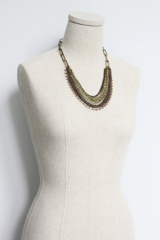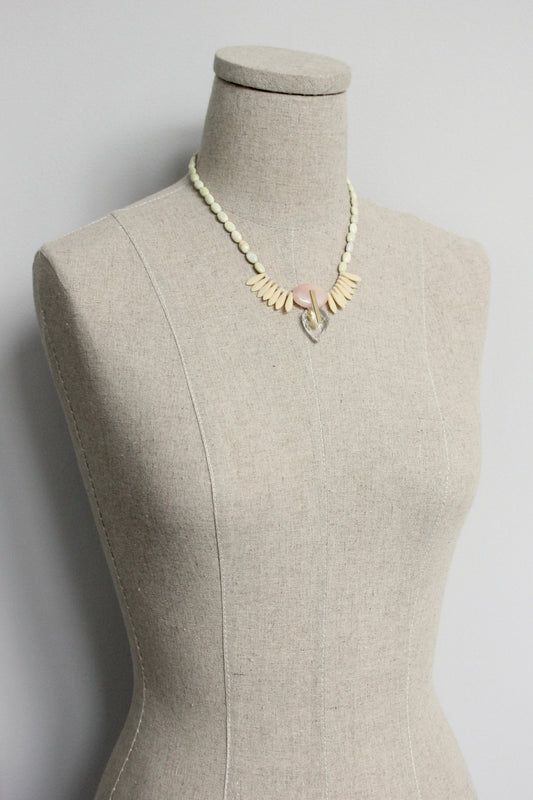 ISL116 Serpentine, peach jade, and glass Artdeco necklace