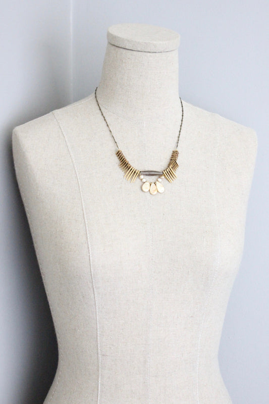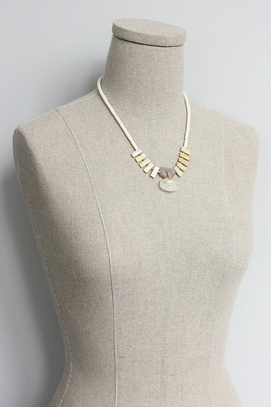 ISL218 Mother of pearl and moonstone fringe Artdeco necklace