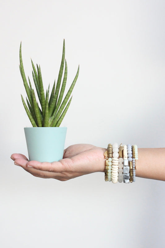ISLB01 Gray, white, and brass wrap bracelet