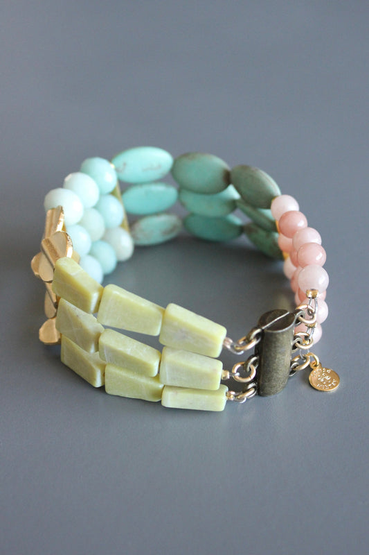 MLNB07 Blush pink, turquoise, and yellow jade bracelet