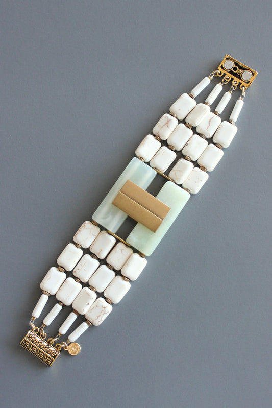 MLNB08 New jade and white turquoise Artdeco bracelet