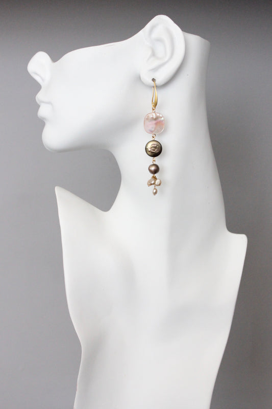 ISLE28 Mother-of-pearl and mauve cluster earrings