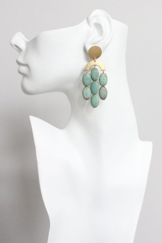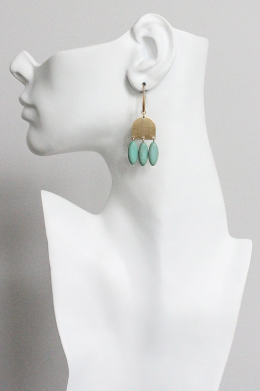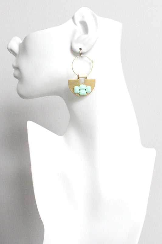 MLNE42 Turquoise and brass geometric earrings