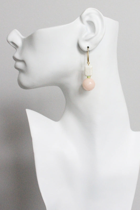 MLNE13 Pink jade and white earrings