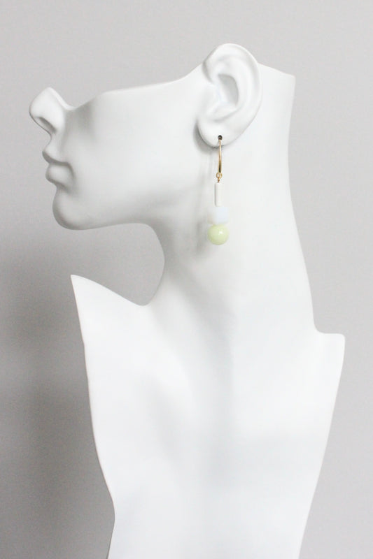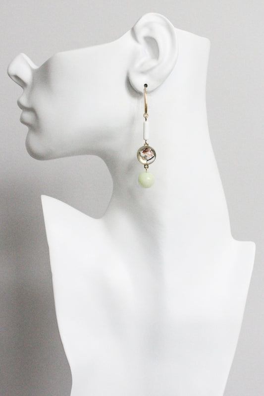 MLNE20 Vintage opal jonquil and celadon glass earrings