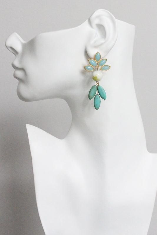 MLNE28 Vintage turquoise glass cluster earrings