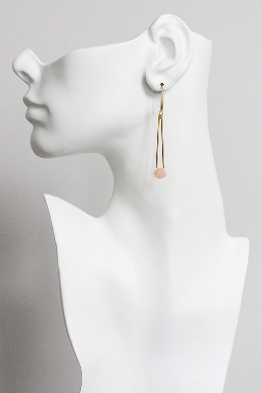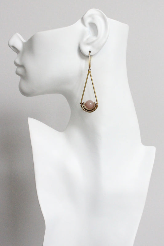 MLNE27 Pink moonstone geometric earrings