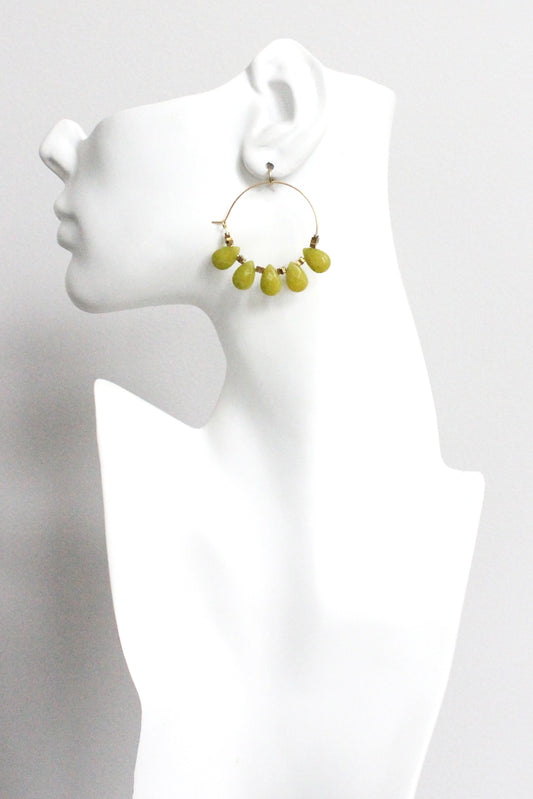 MLNE08 Dyed olive jade hoop earrings