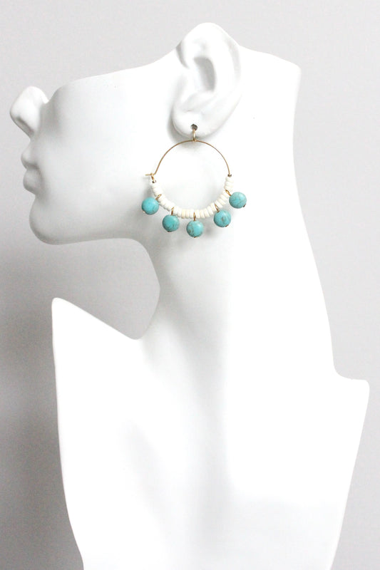 MLNE09 Turquoise and white hoop earrings