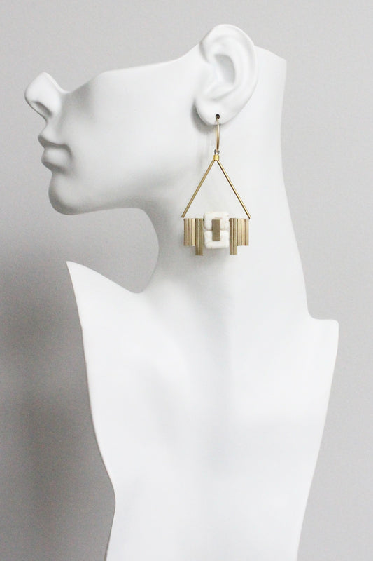 MLNE46 White and brass Artdeco earrings