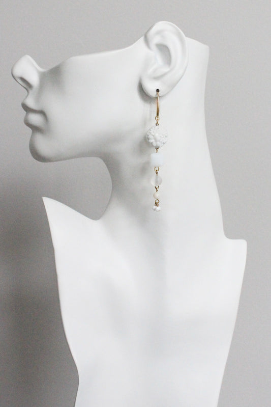 MLNE43 Vintage chalk white glass cluster earrings