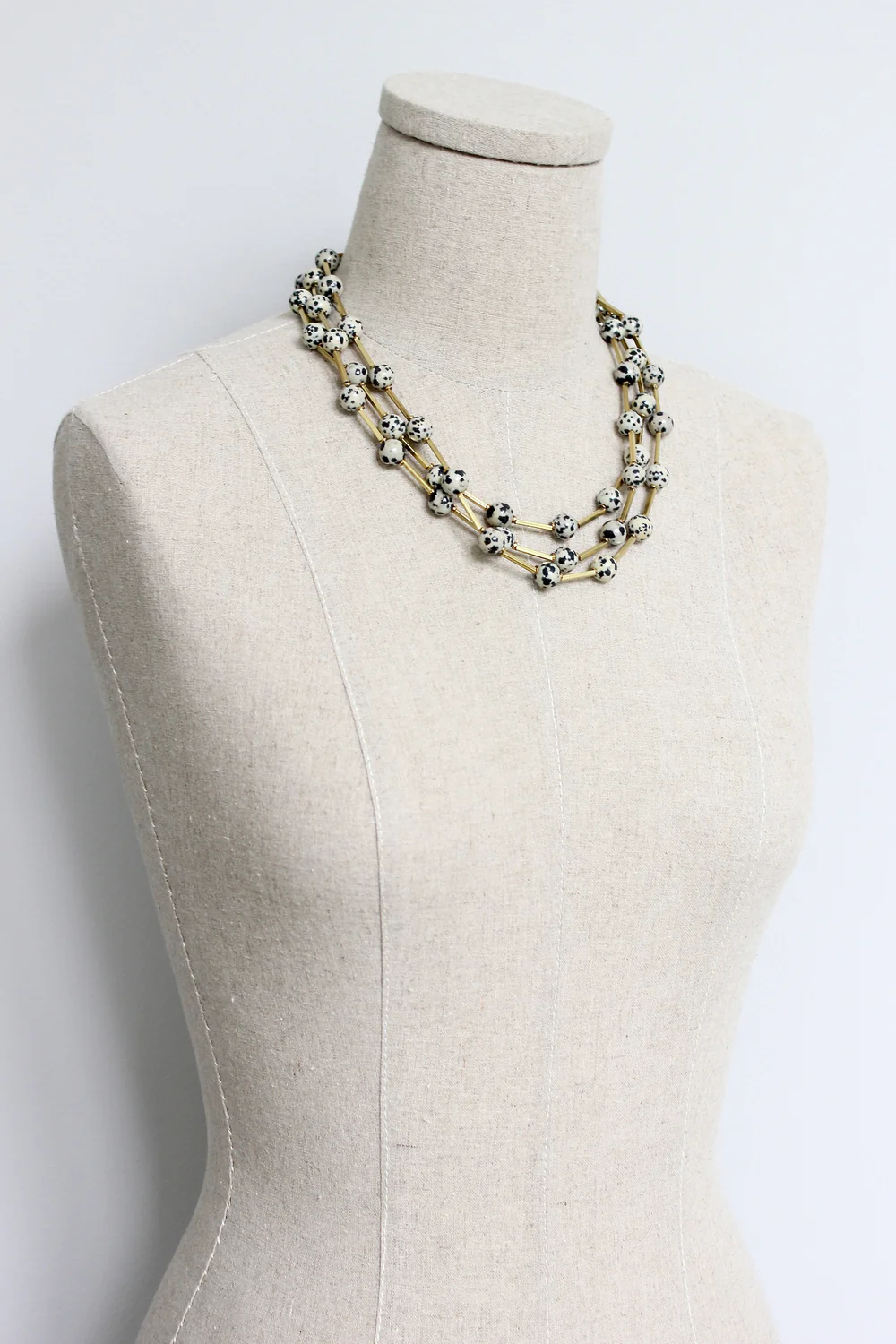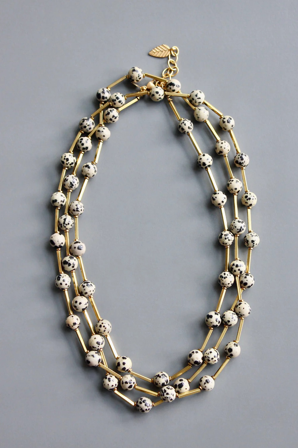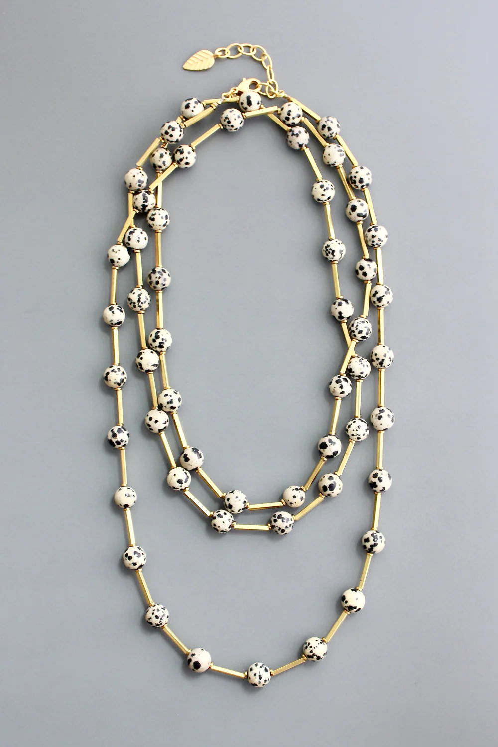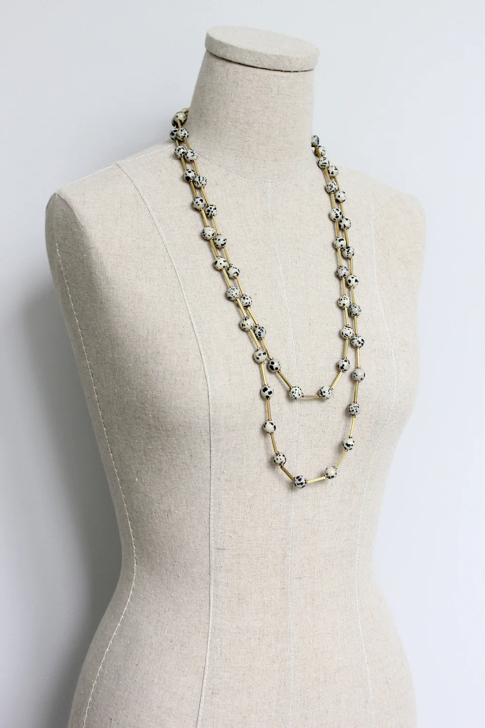 60” necklace with dalmatian jasper and brass. 1 inch extender.