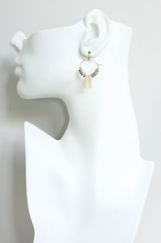 JLTE04 gray and brass geometric mini hoop earrings