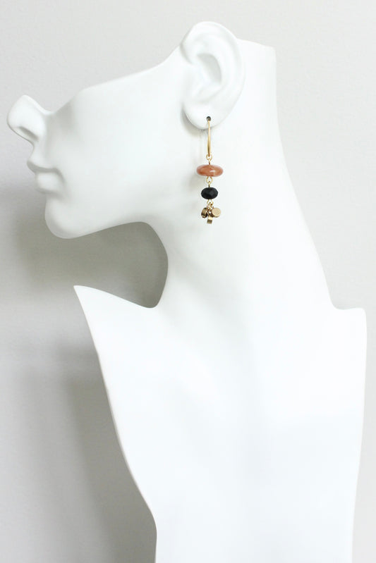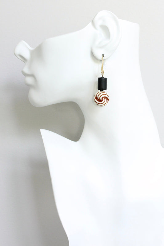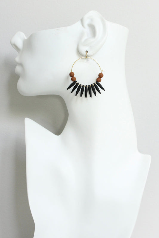 JLTE09 black and caramel brown hoop earrings