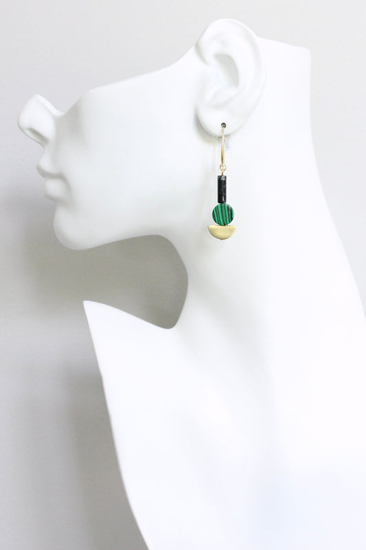 JLTE19 malachite and black earrings