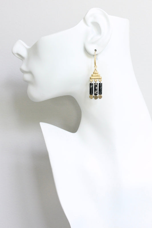 JLTE21 black and brass Artdeco earrings