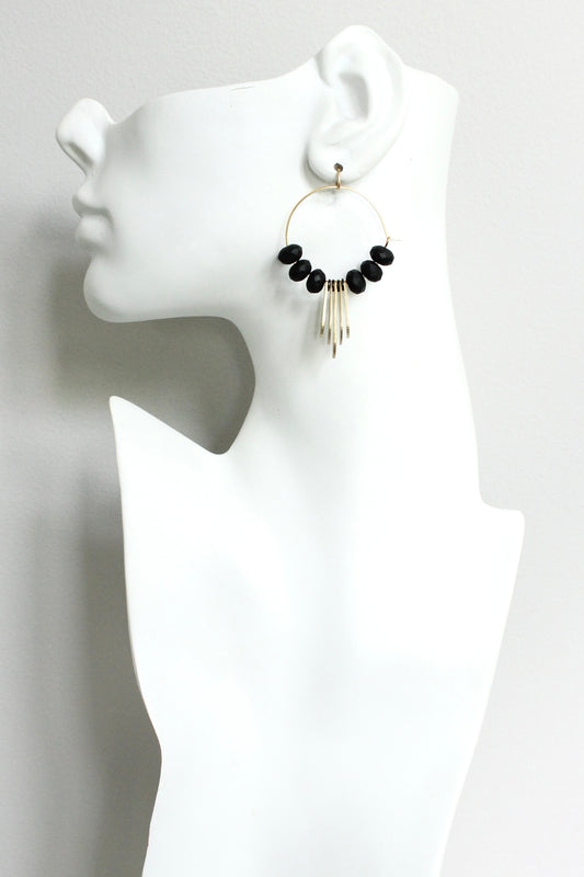 JLTE27 black and brass hoop earrings
