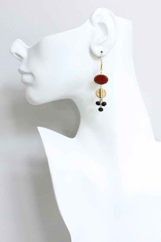 JLTE13 carnelian disc and brass earrings