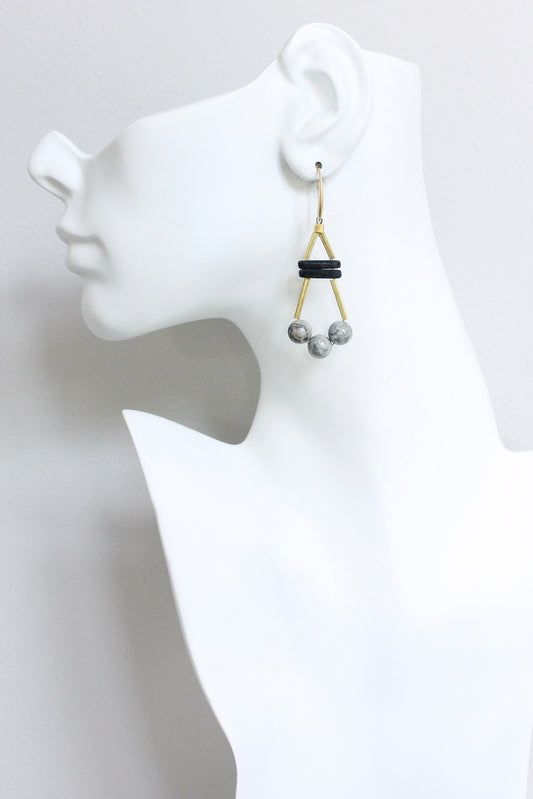 JLTE33 black and brass geometric earrings