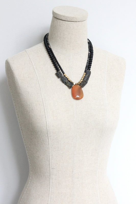 JLT319 double strand tourmaline and carnelian pendant necklace