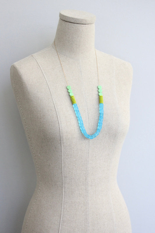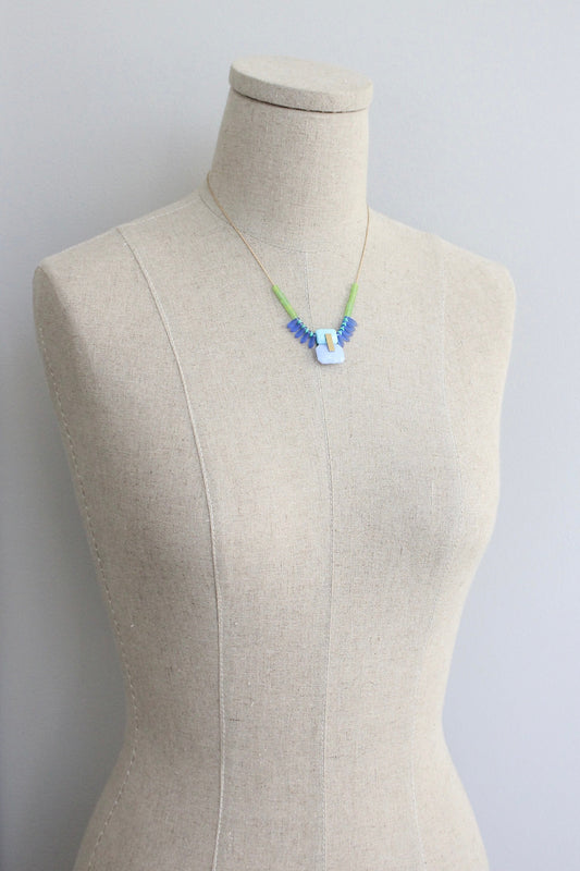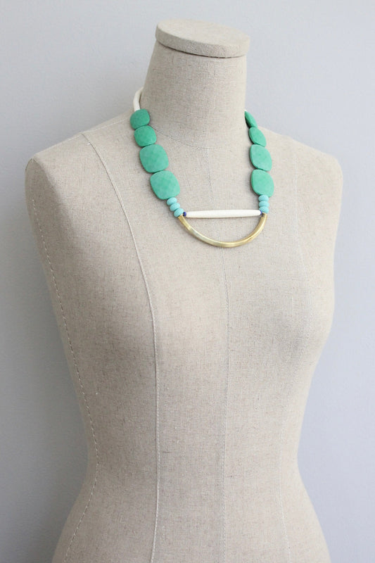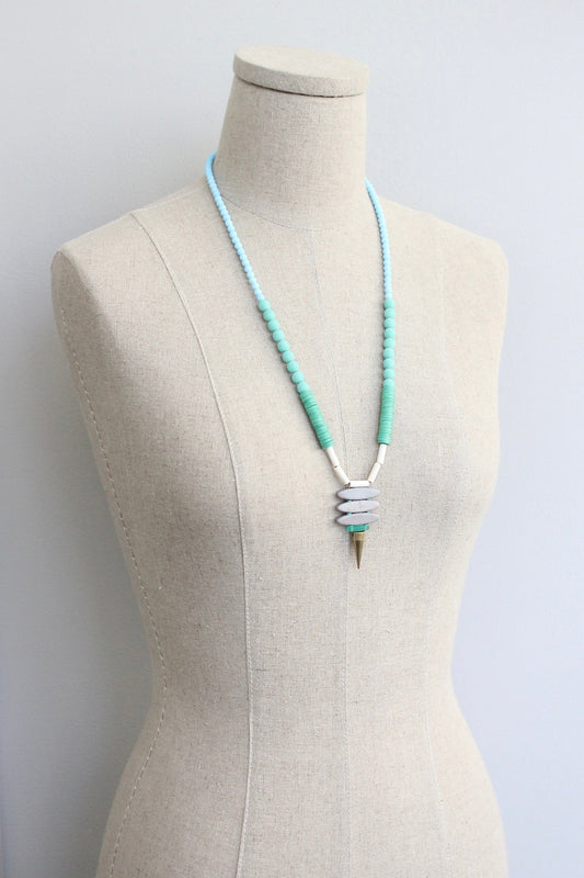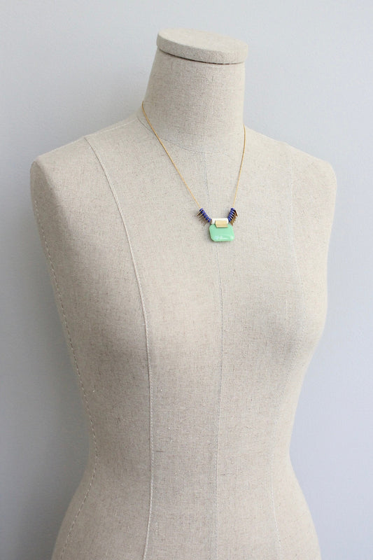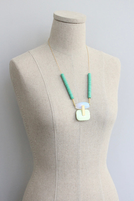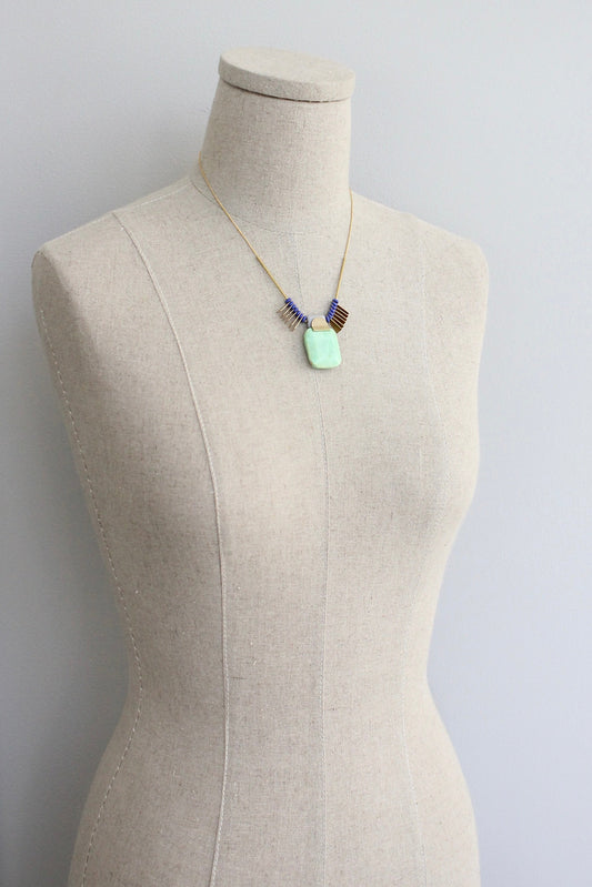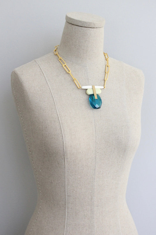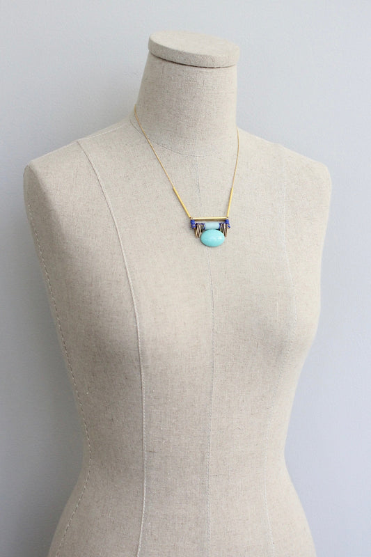 KYL618 turquoise glass and ammonite Artdeco necklace