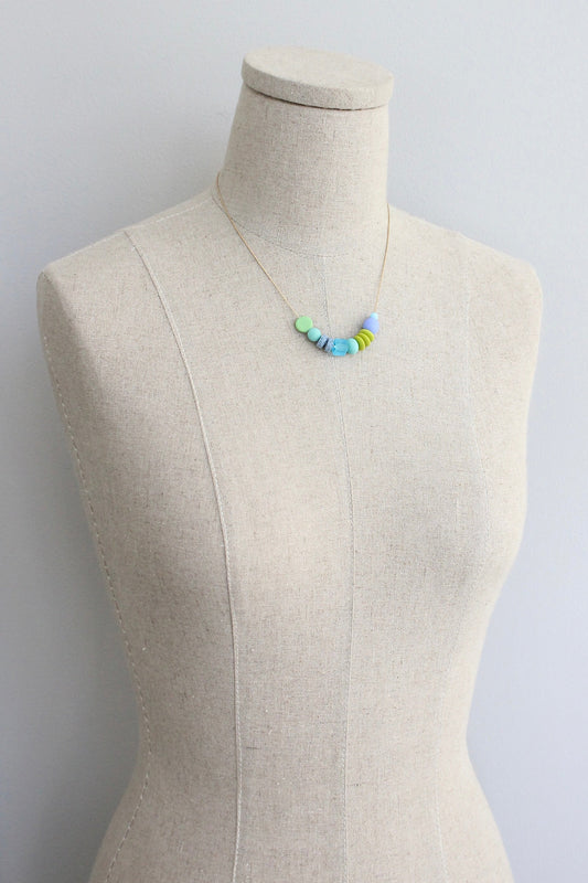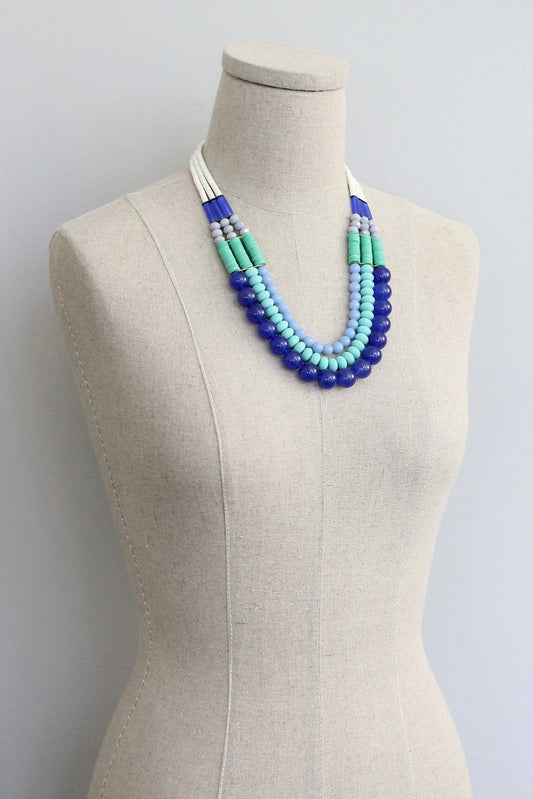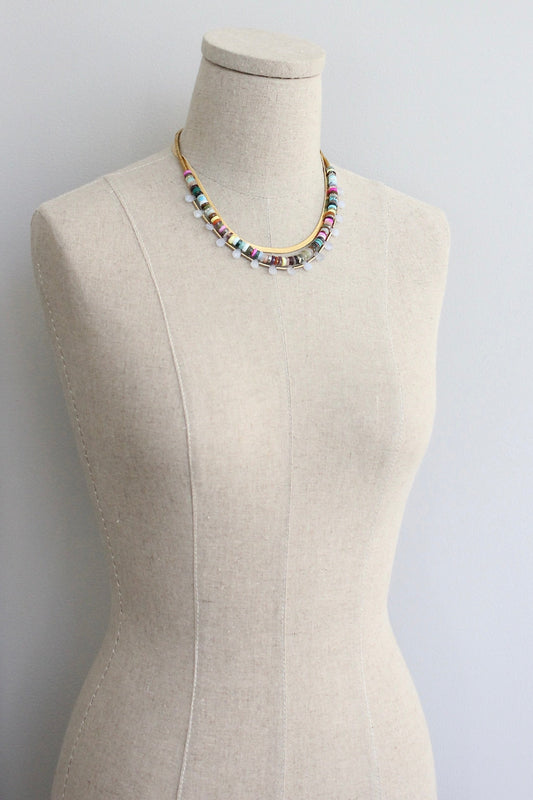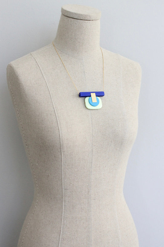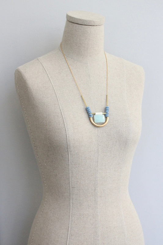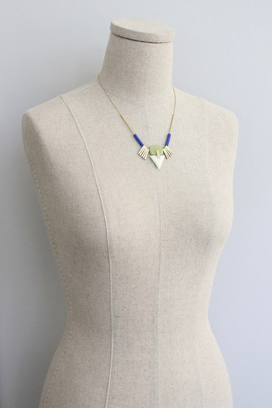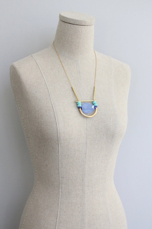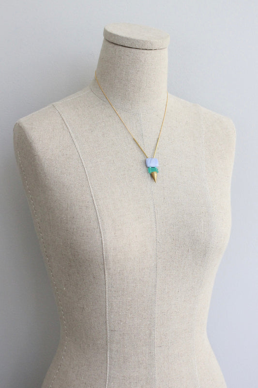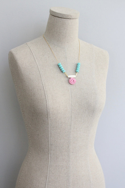 KYL618 turquoise glass and ammonite Artdeco necklace