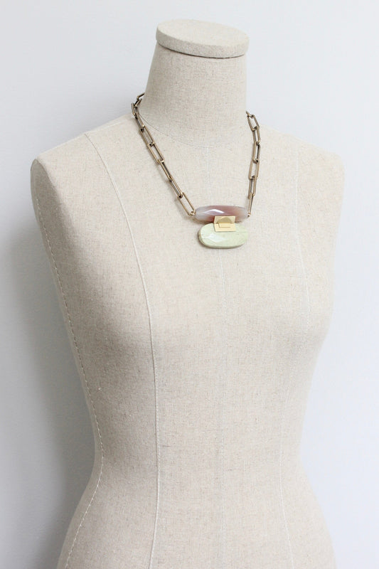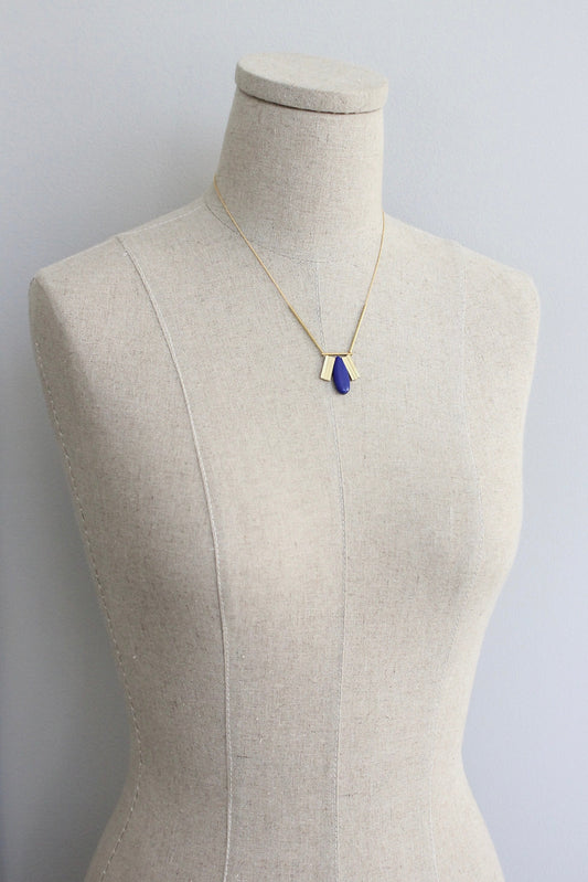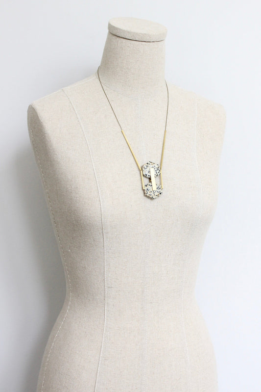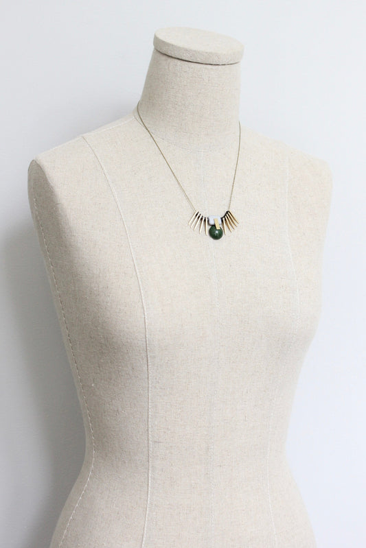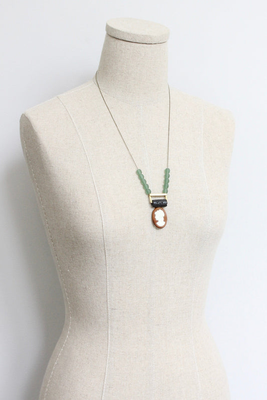 LEX117 Jet glass and jasper pendant ArtDeco necklace