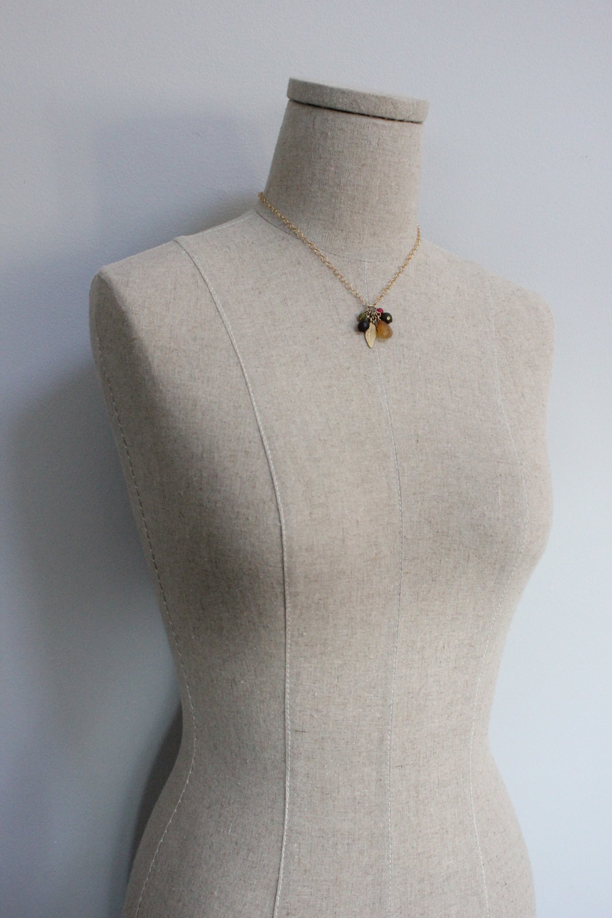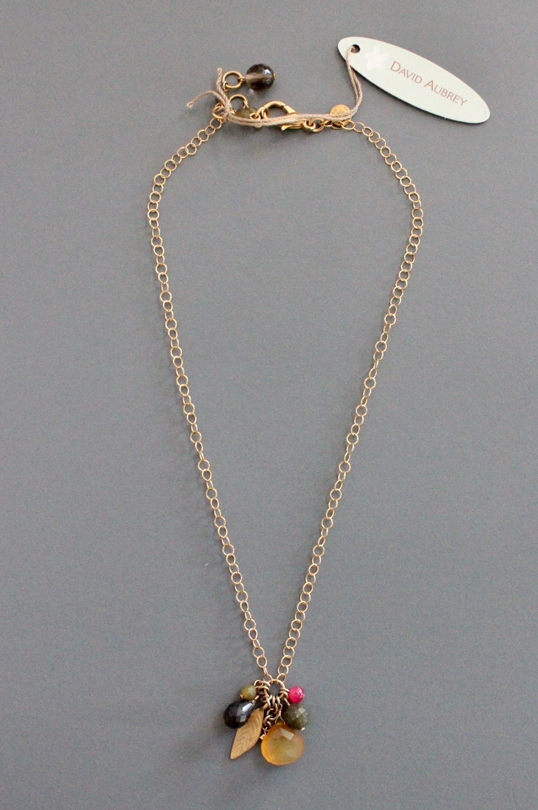 15 inch necklace with 18k gold plated chain and gemstones. 1 inch extender