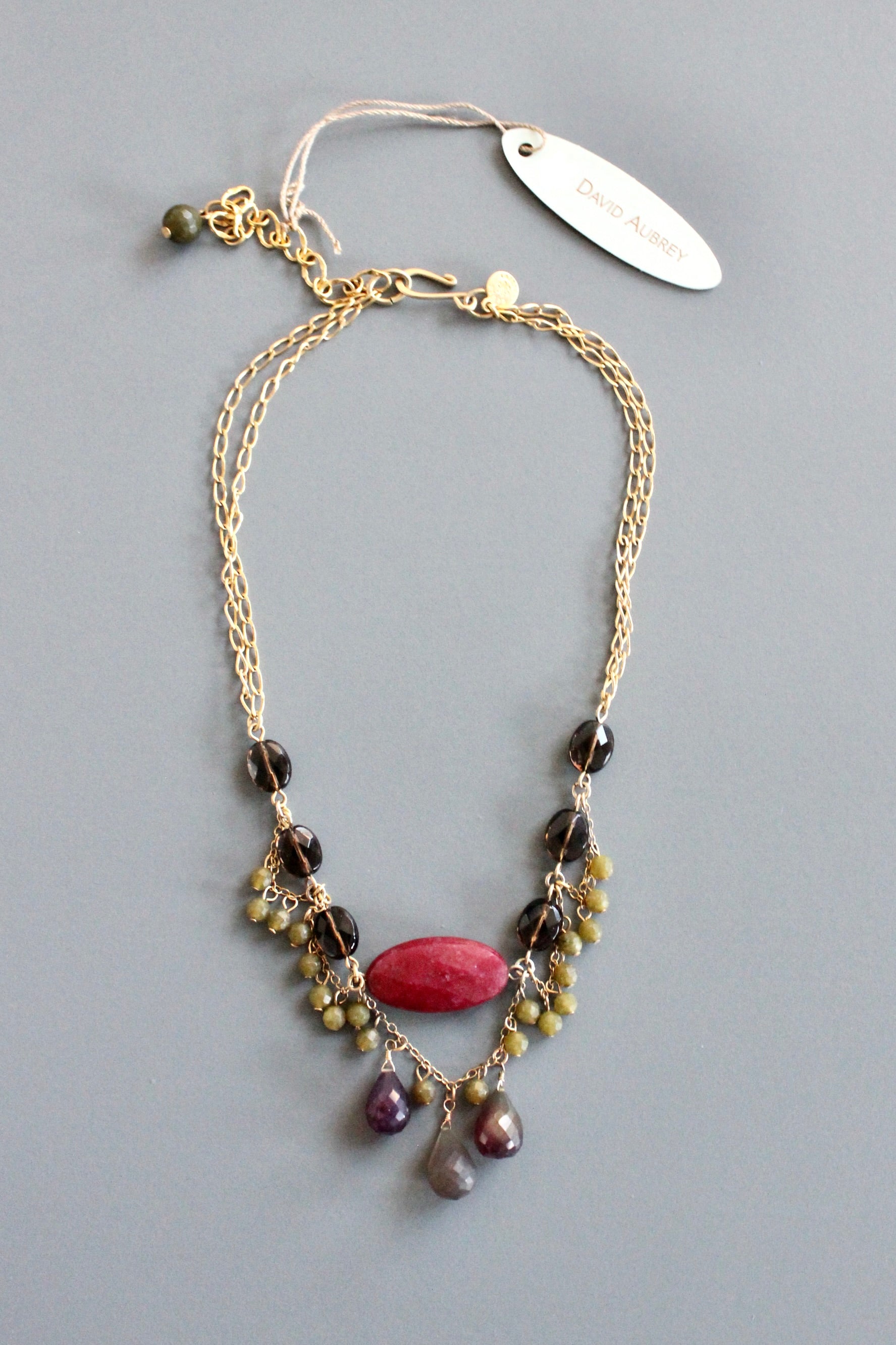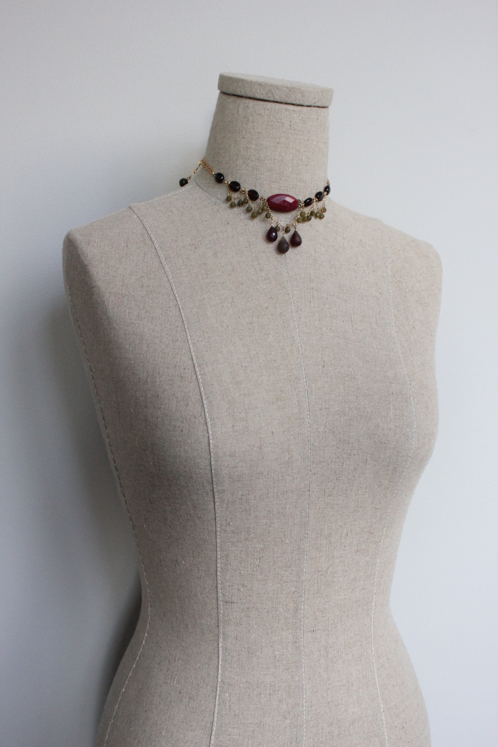 13 inch choker with 18k gold plated chain and gemstones. 2 inch extender