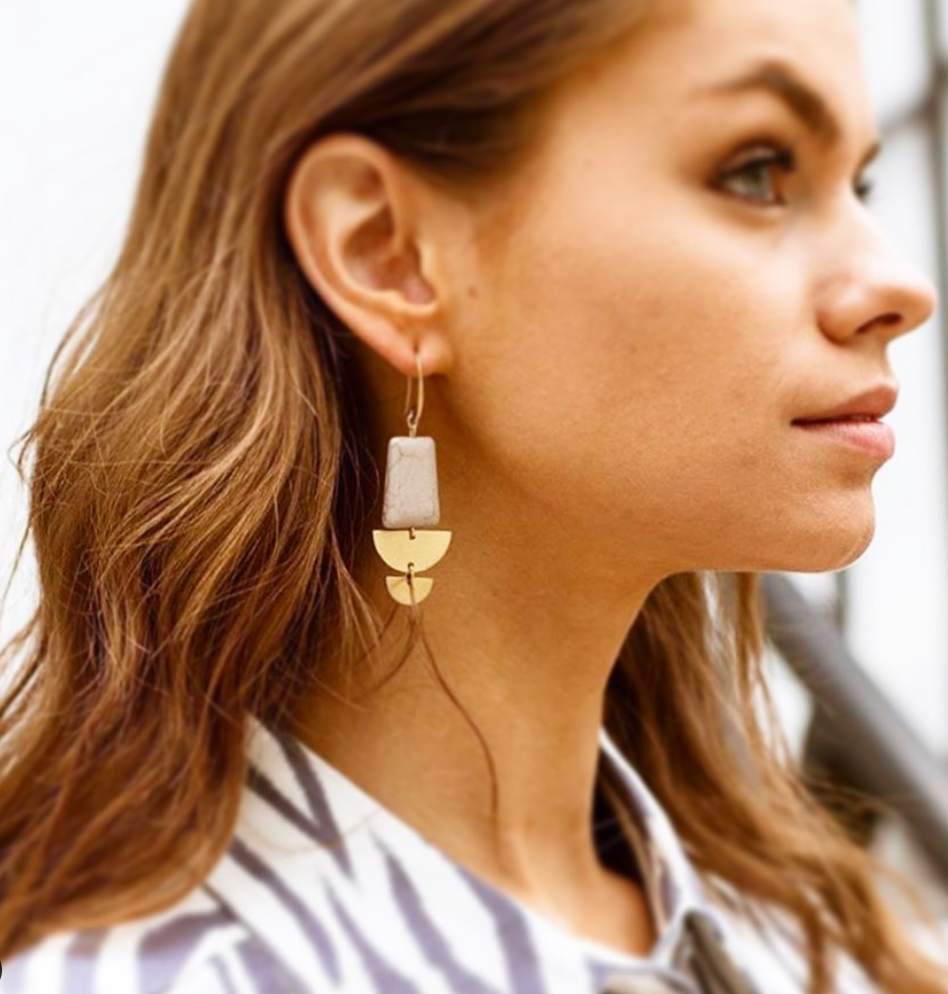 18k gold plated brass hooks with magnesite. 3 inches.