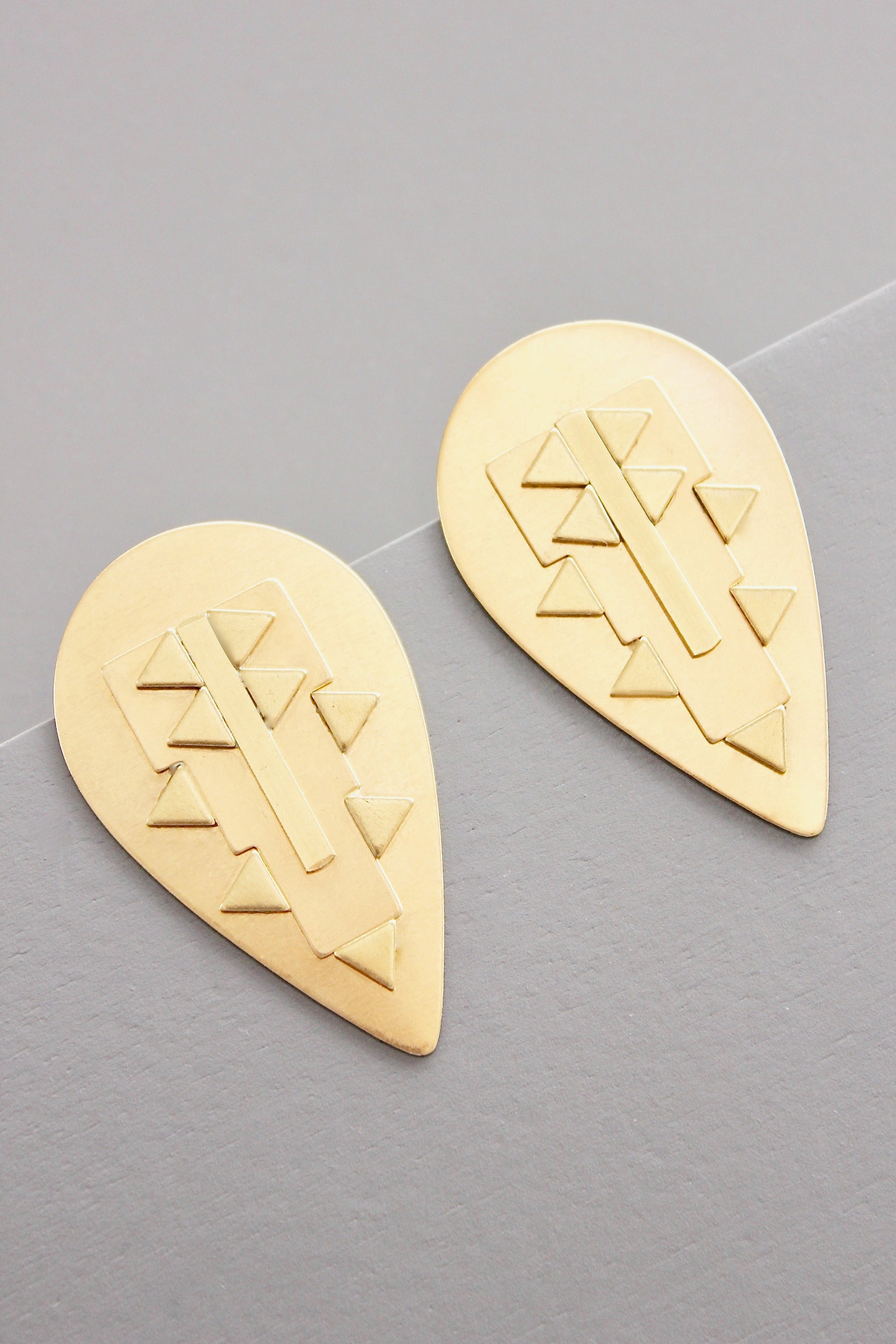 brass earrings with hypoallergenic surgical steel posts. 2 inches.