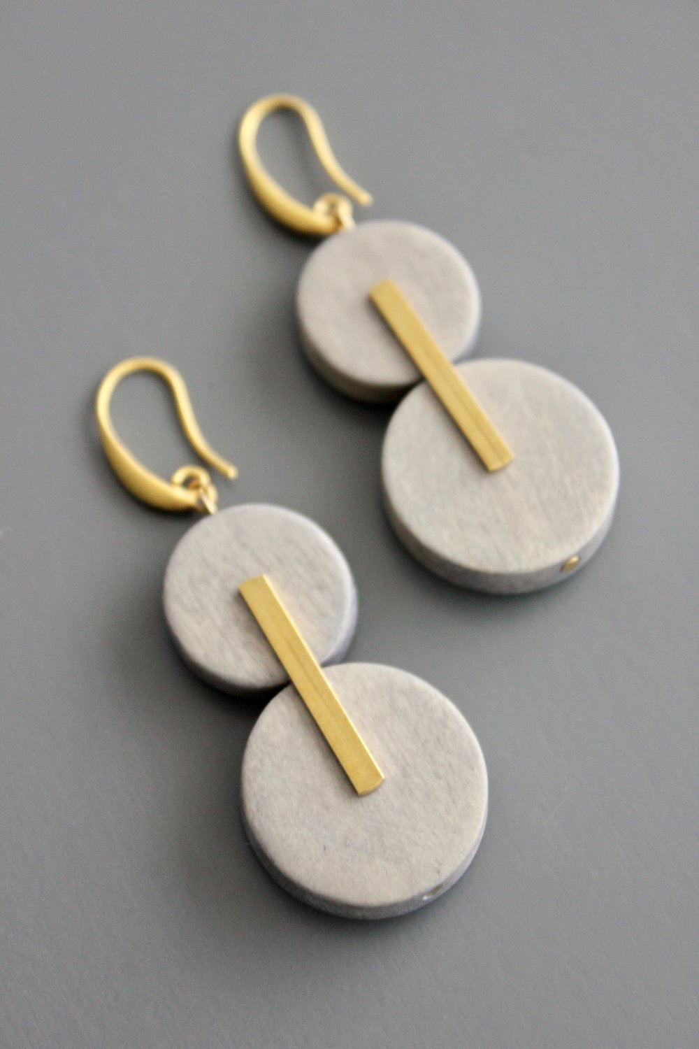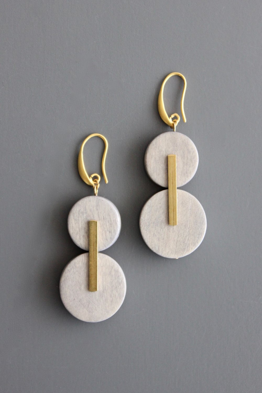 18 carat gold plated brass hooks with wood and brass. 2.75 inches.