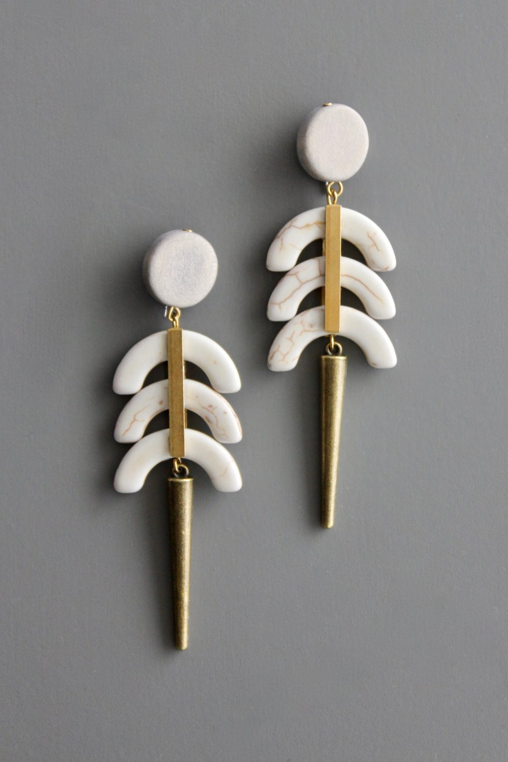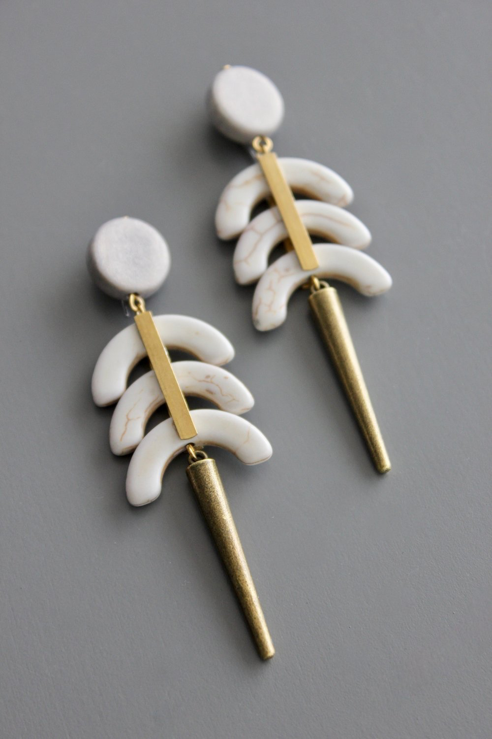 wood, brass, and magnesite hypoallergenic surgical steel post earrings. 3.25 inches.