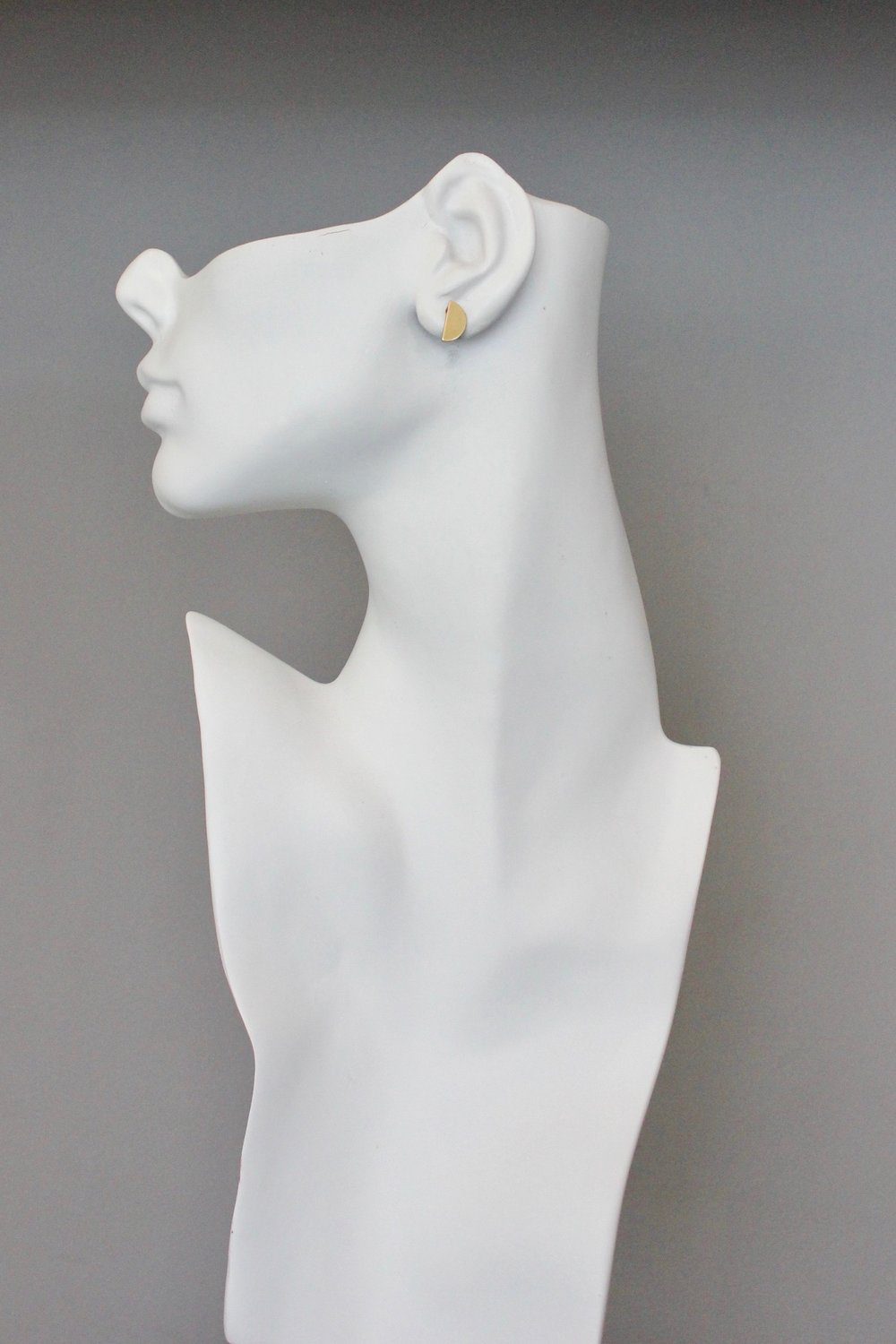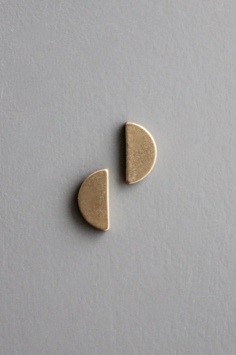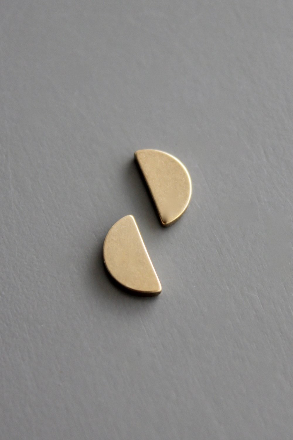 half moon brass with hypollergenic surgical steel post earrings. 1/2 inch.