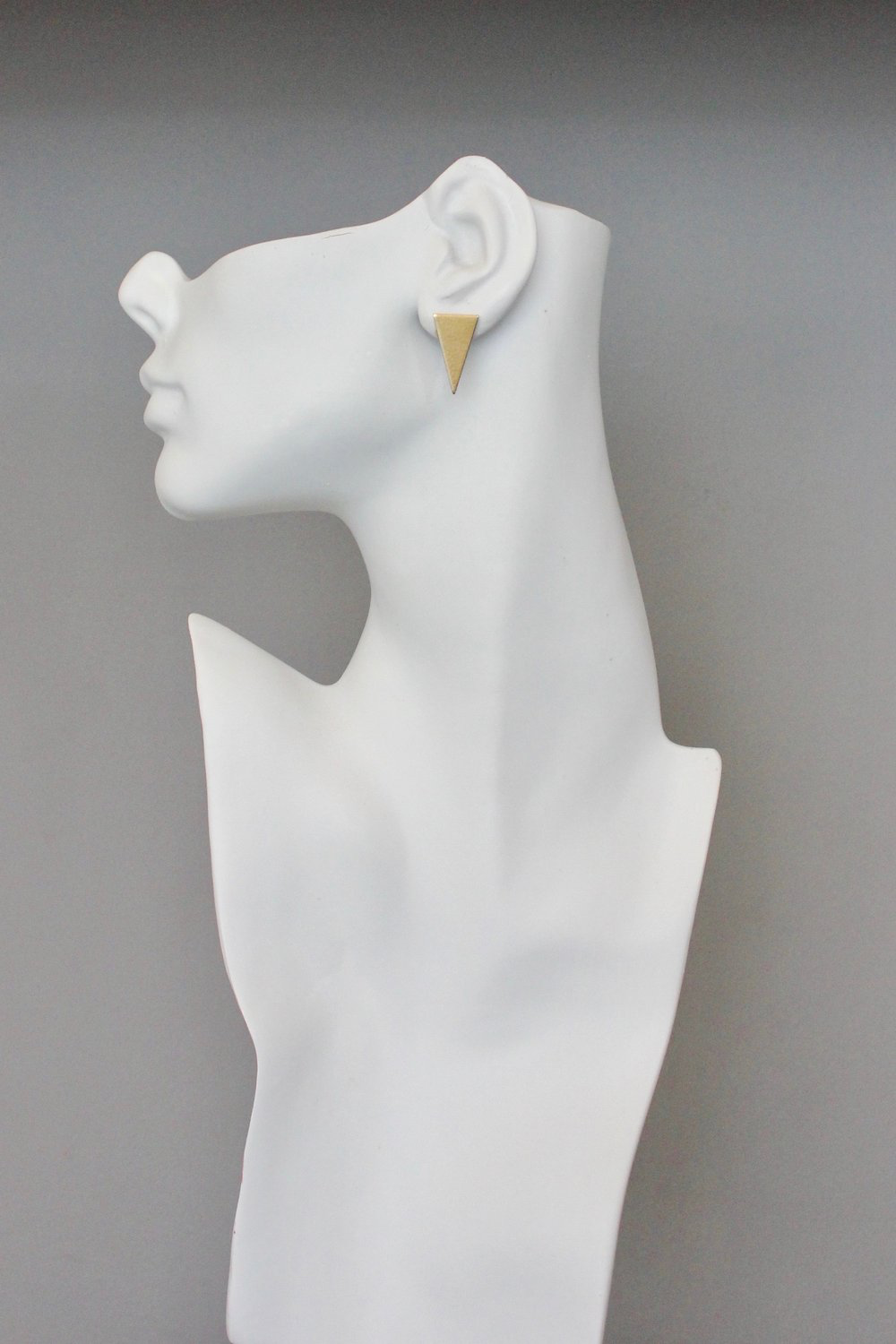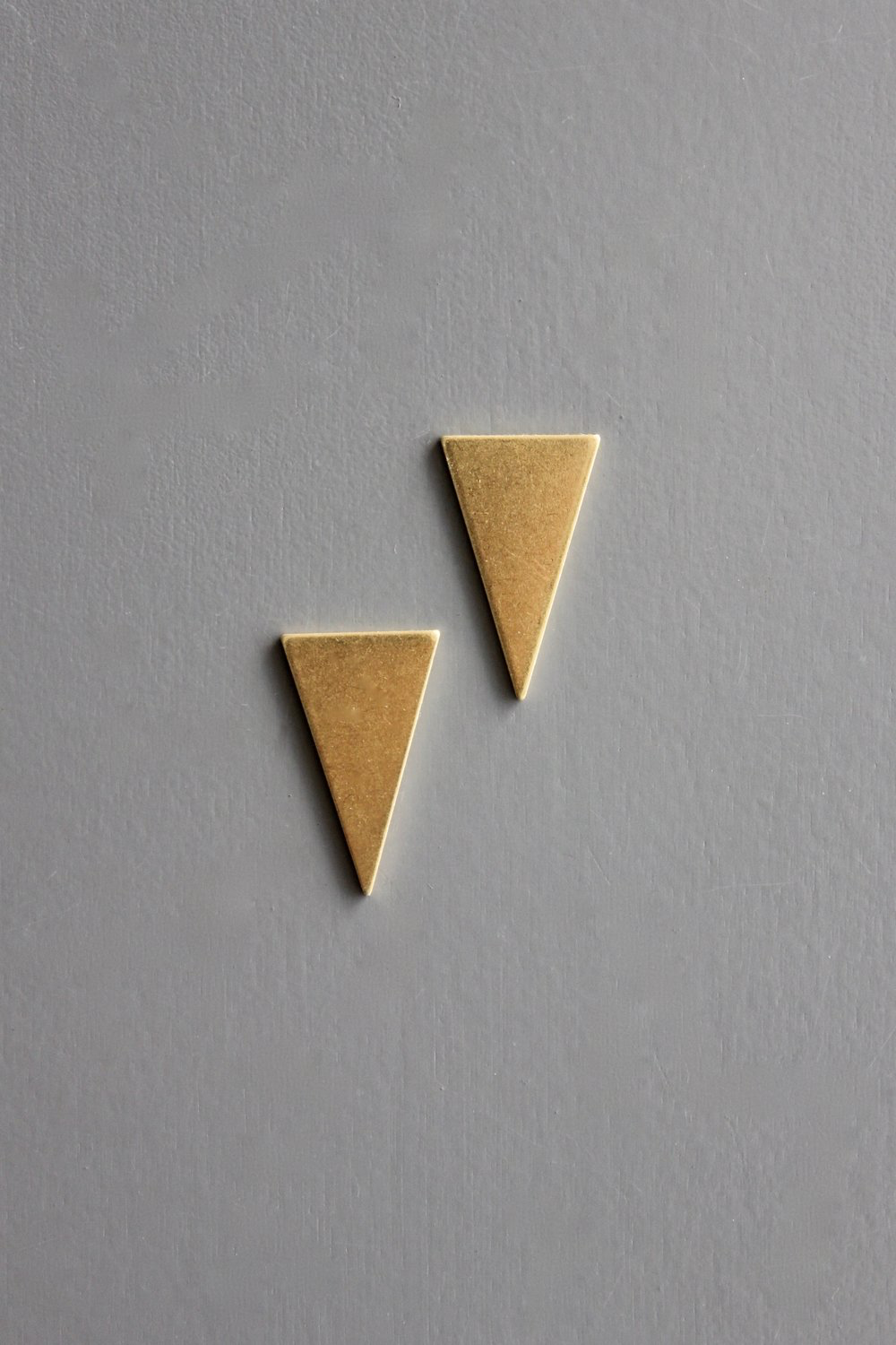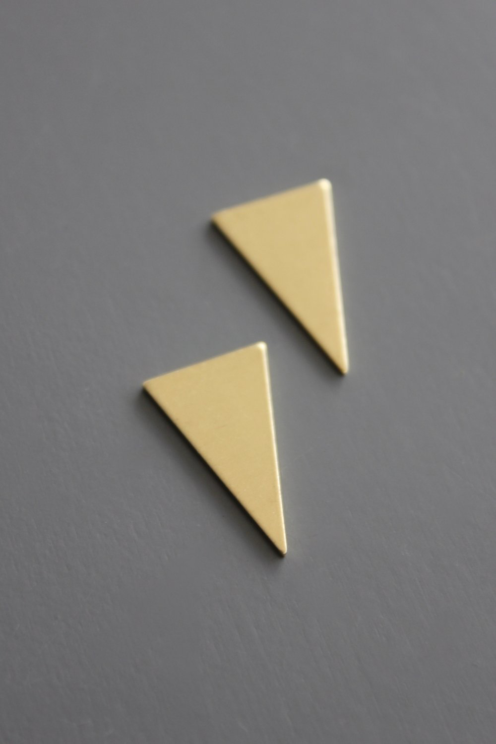 triangle brass with hypollergenic surgical steel post earrings. 7/8 X 1/2 inch.