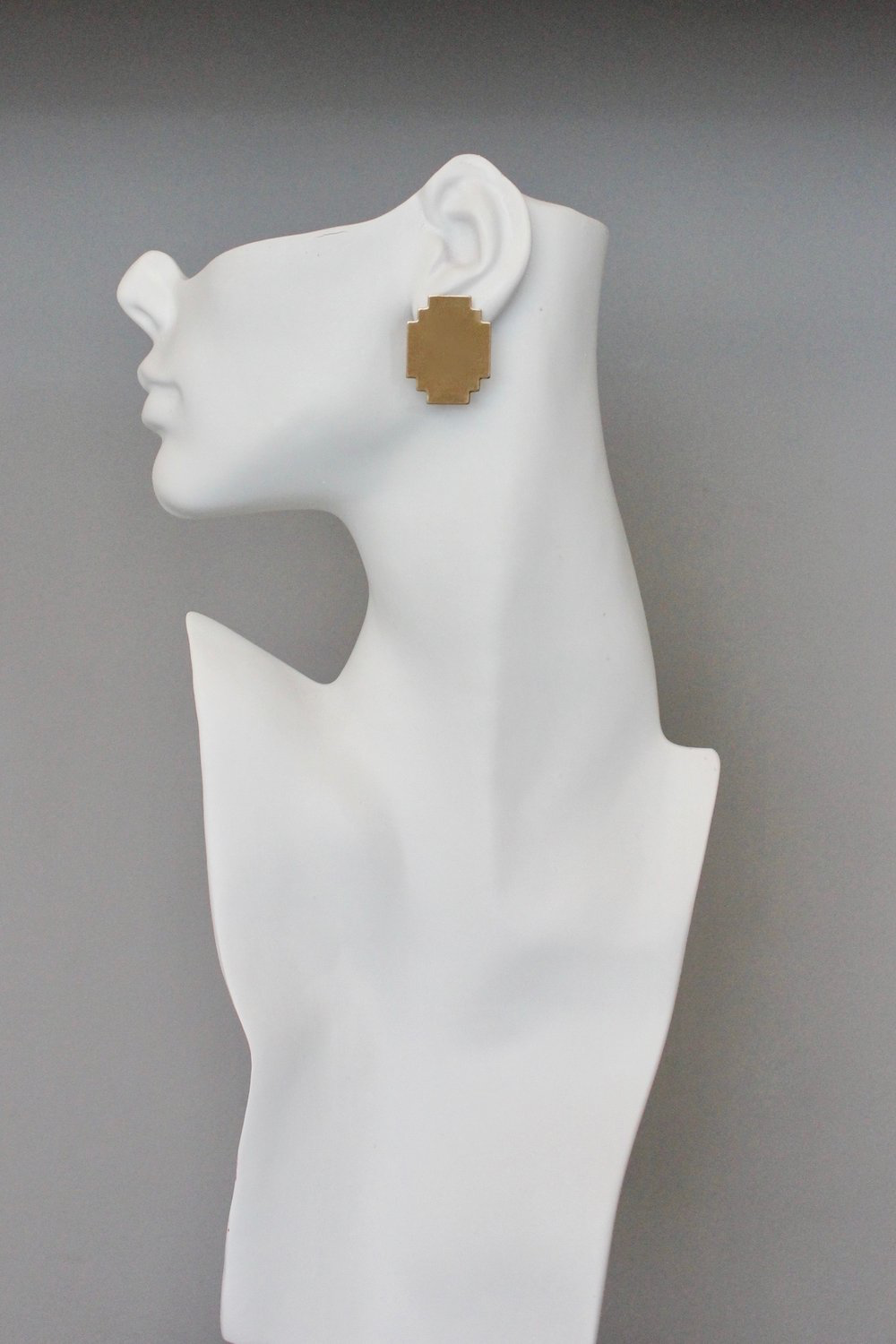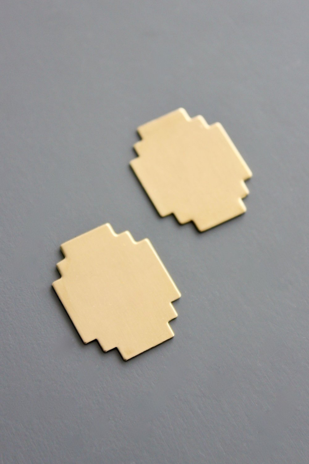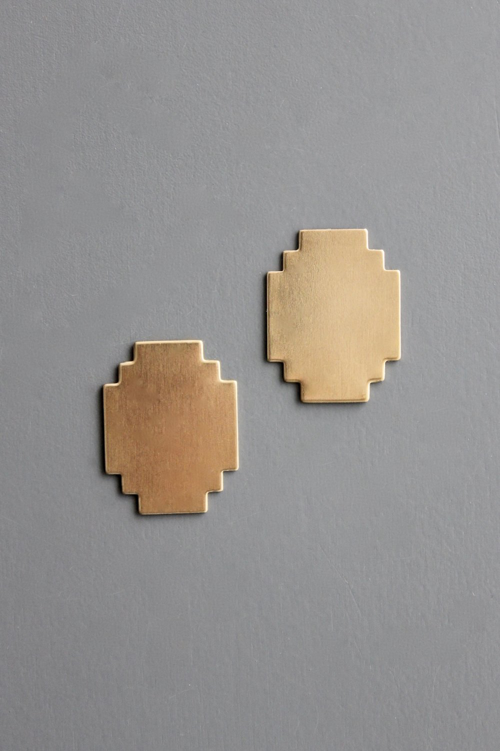 cross quadrate brass with hypollergenic surgical steel post earrings. 1 3/8 X 1 inch.
