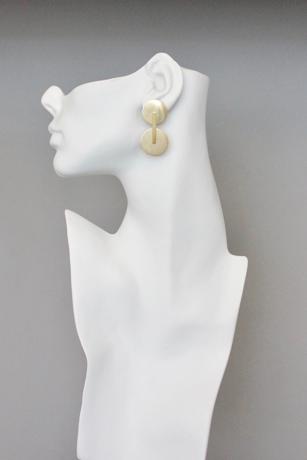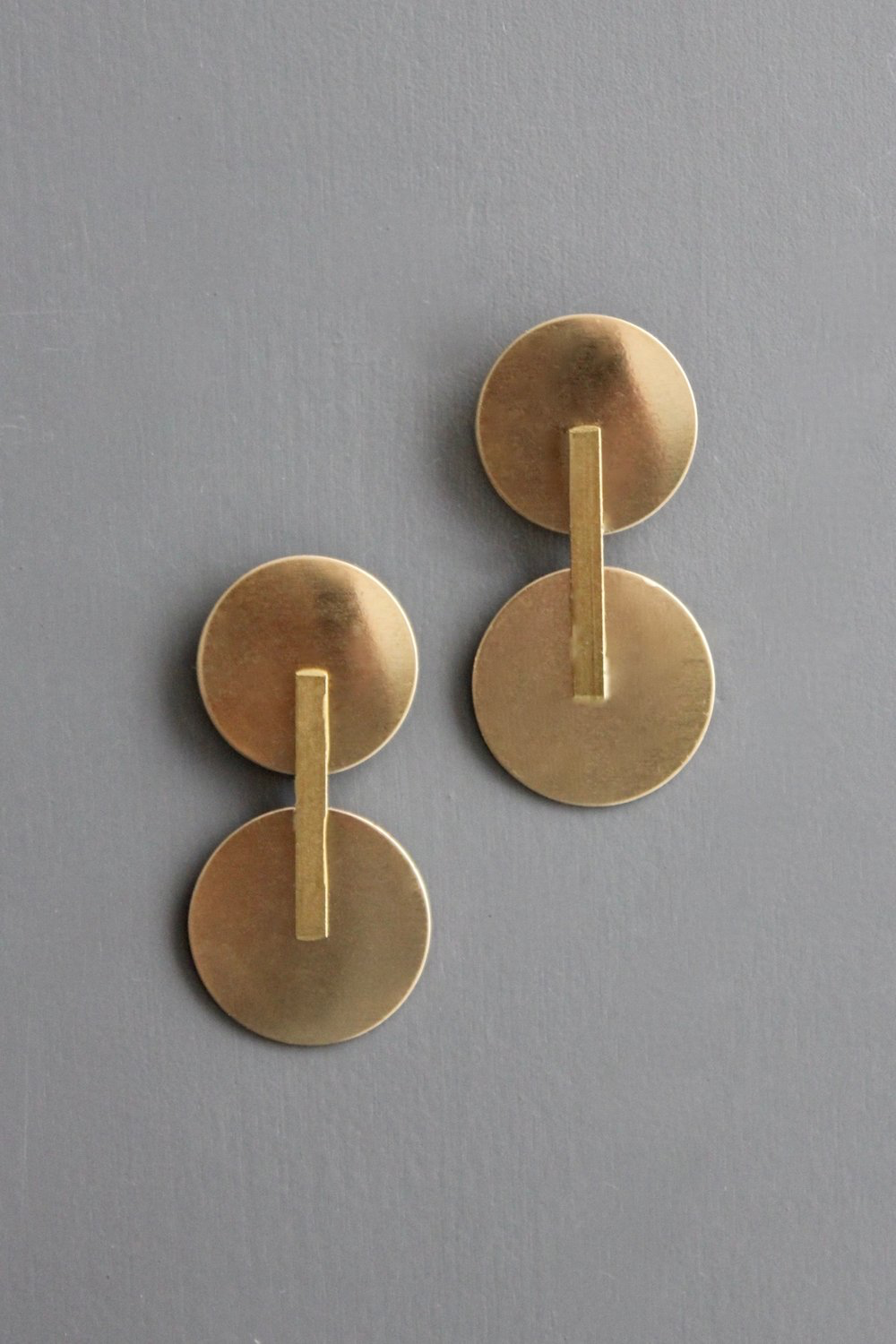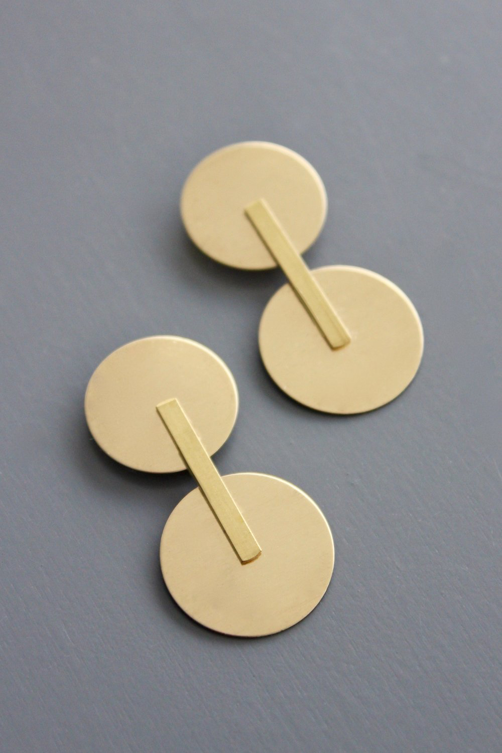 double circle brass with hypollergenic surgical steel post earrings. 1.75 inches.