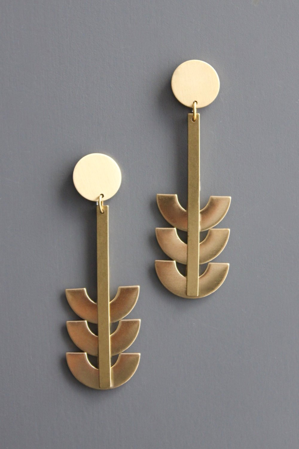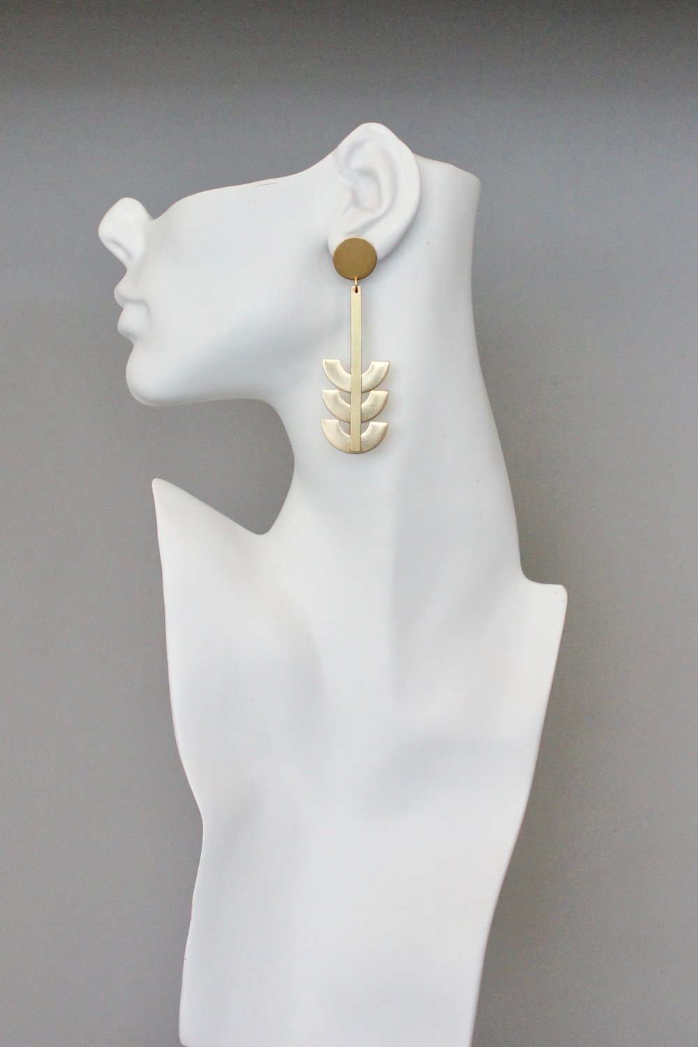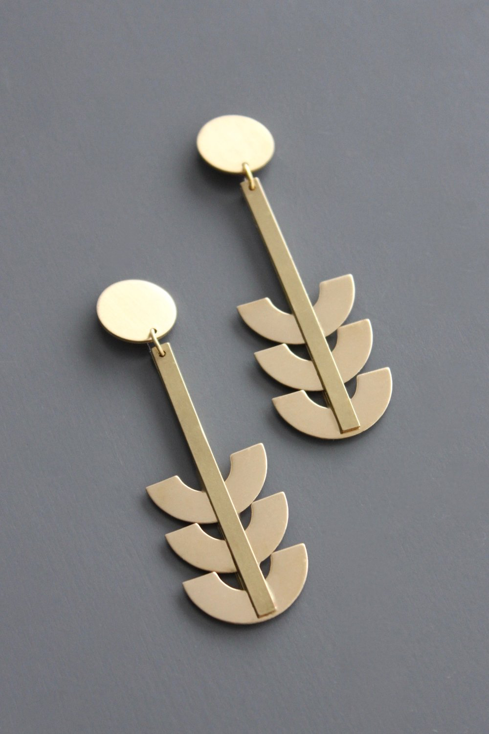 brass with hypollergenic surgical steel post earrings. 3 inches.