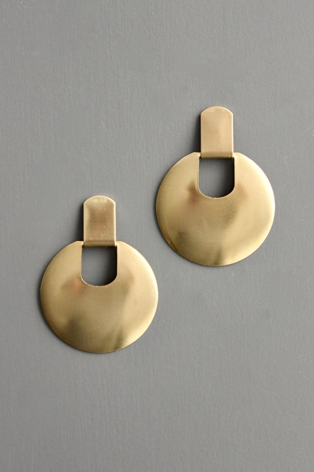 brass with hypollergenic surgical steel post earrings. 2 X 1.5 inches.