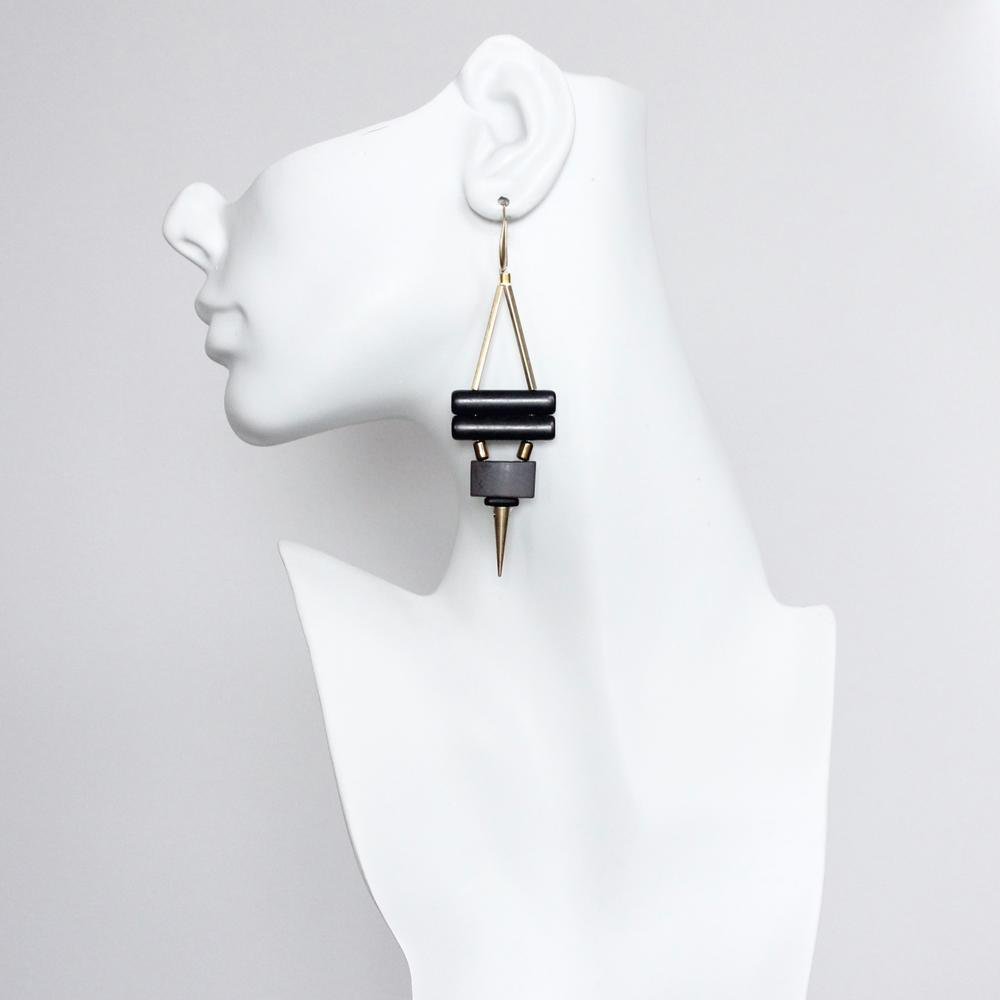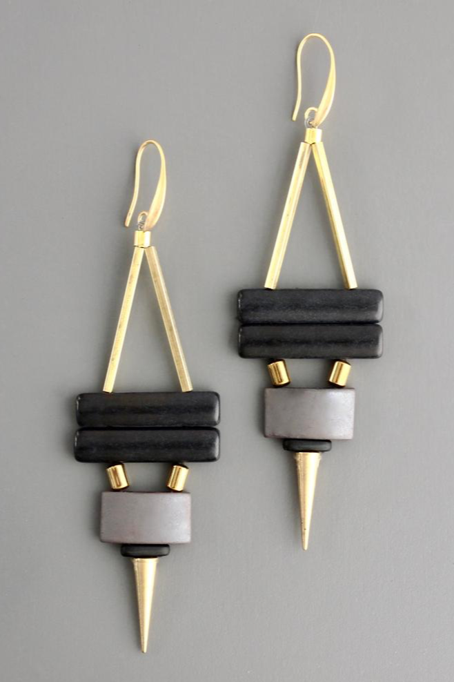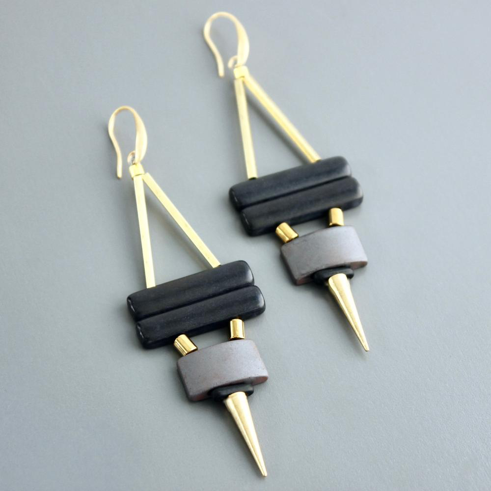 18k gold plated brass hooks with magnesite, plated hematite, and brass. 4 1/8 inches from top of hook.