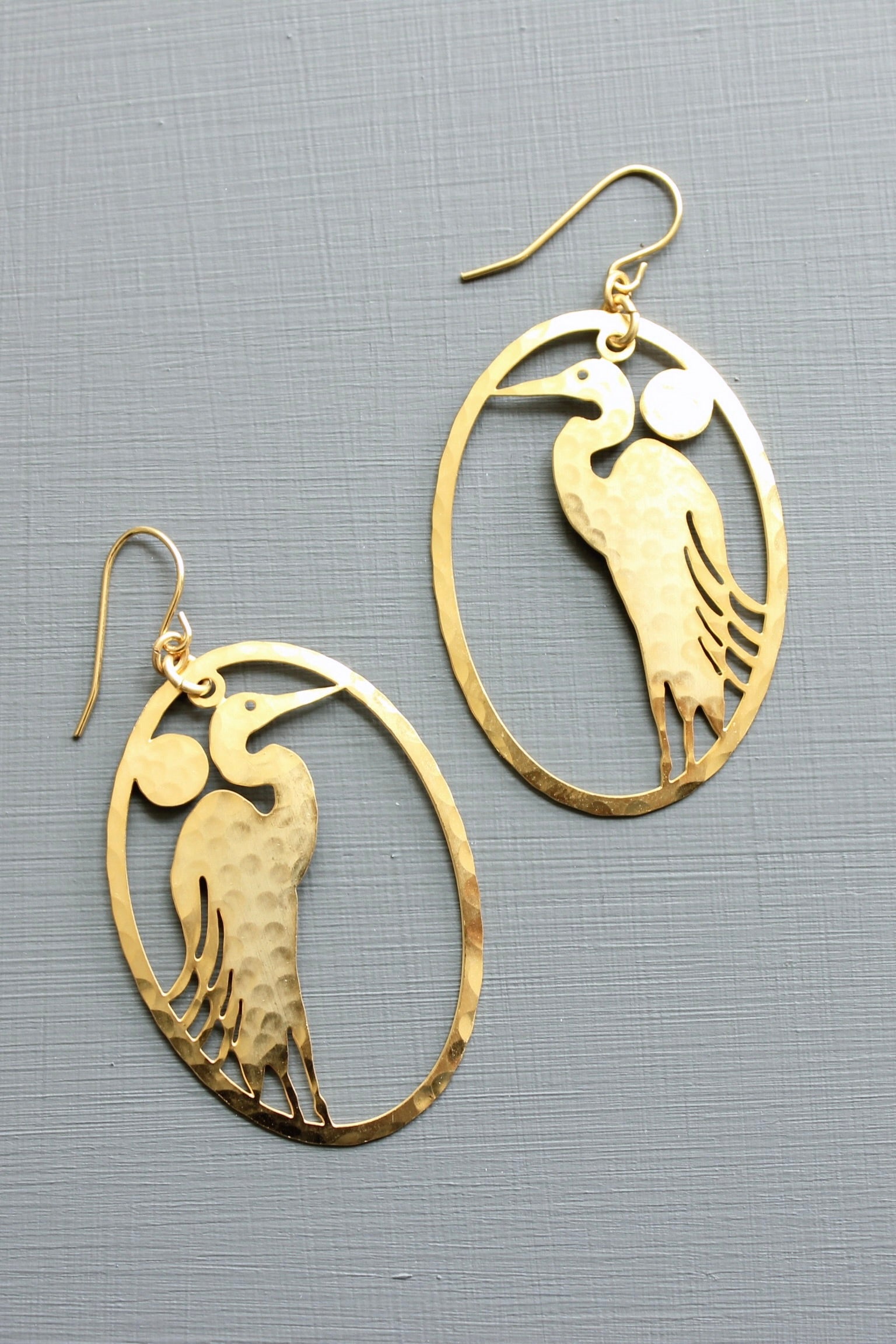 18k gold plated heron laser cut earrings. Each earring measures 1.875 inches. GLC380B