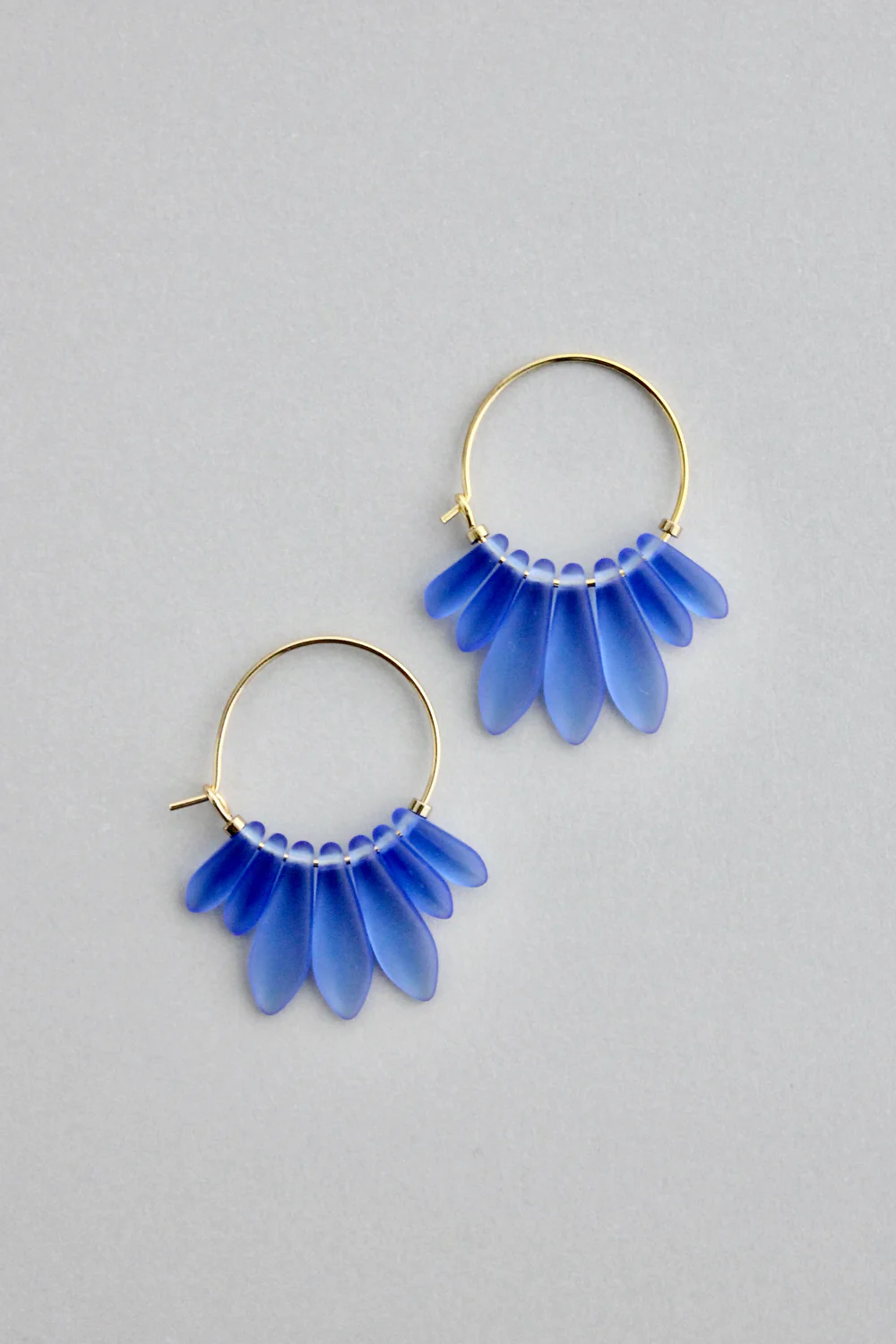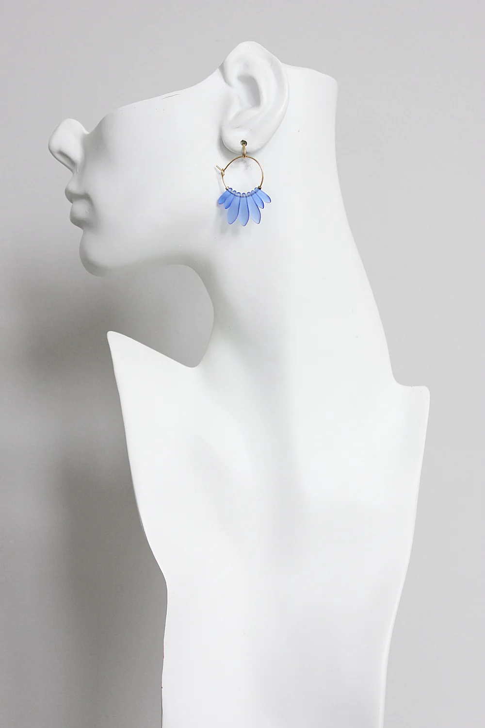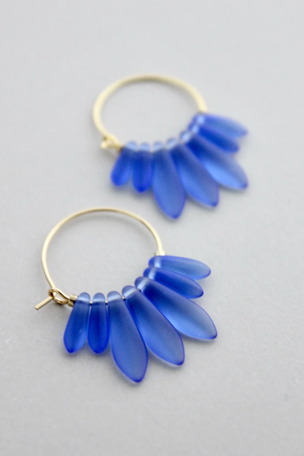 Small gold plated hoop earrings with czech glass. Each earring weighs .065 oz and measures 1.25 inches