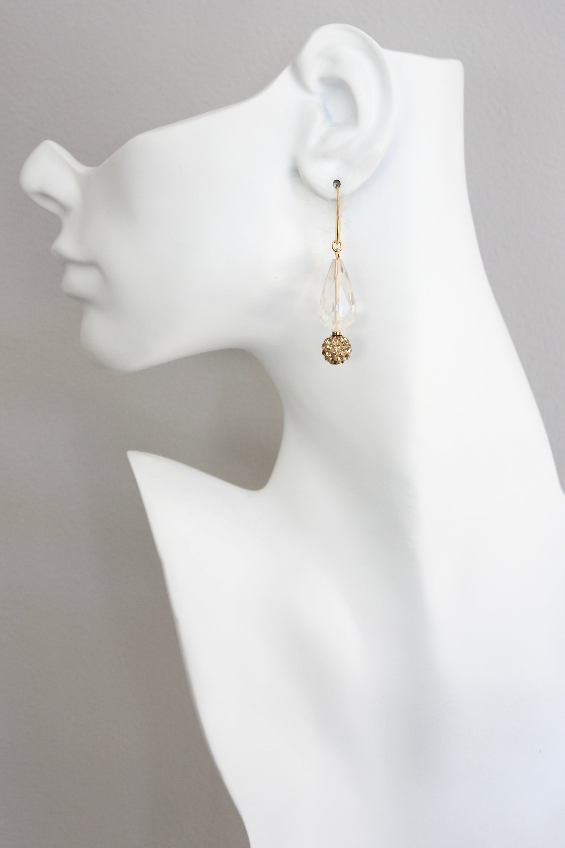 18k gold plated brass earrings with quartz and glass. Each earring weighs .19oz and measures 1.25in from top of hook.