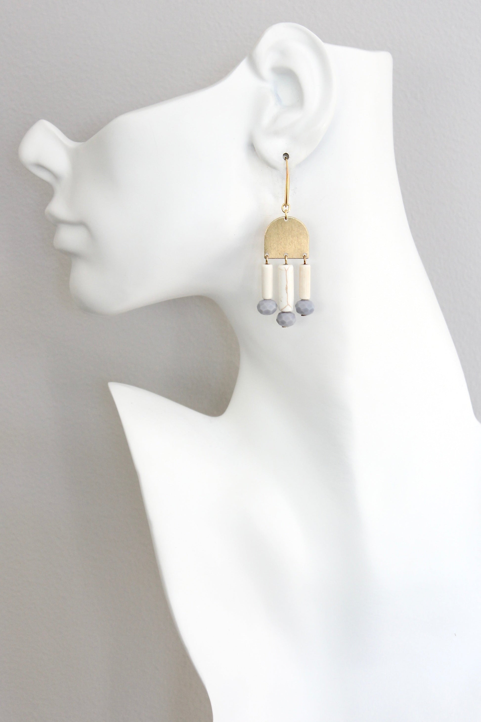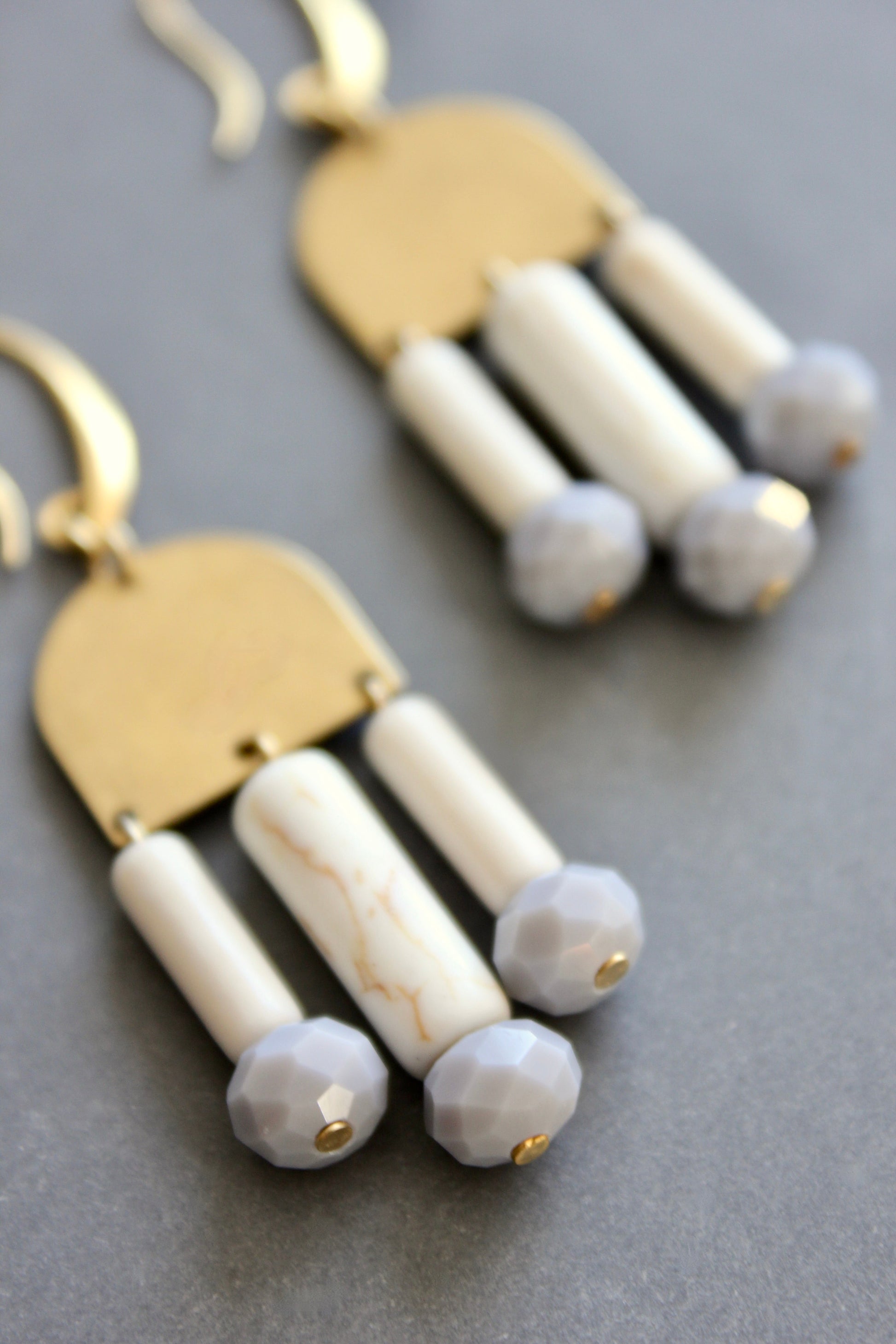 18k gold plated brass earrings with magnesite and glass. Each earring weighs .175oz and measures 2.5in from top of hook.