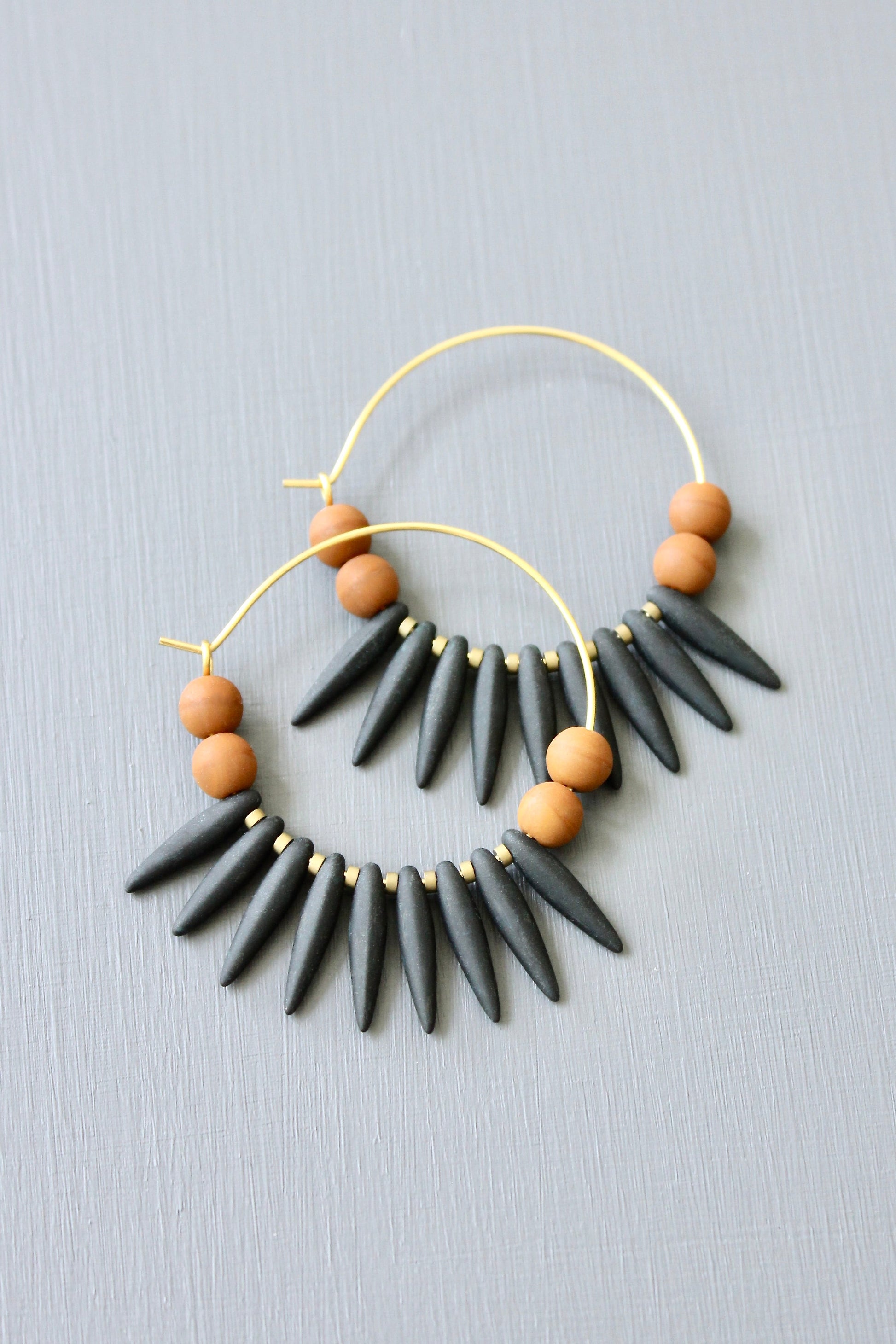 18k Gold plated brass hoop earrings with glass. Each earring weighs .125 oz. and measures 1.875 inches in length from top to bottom.