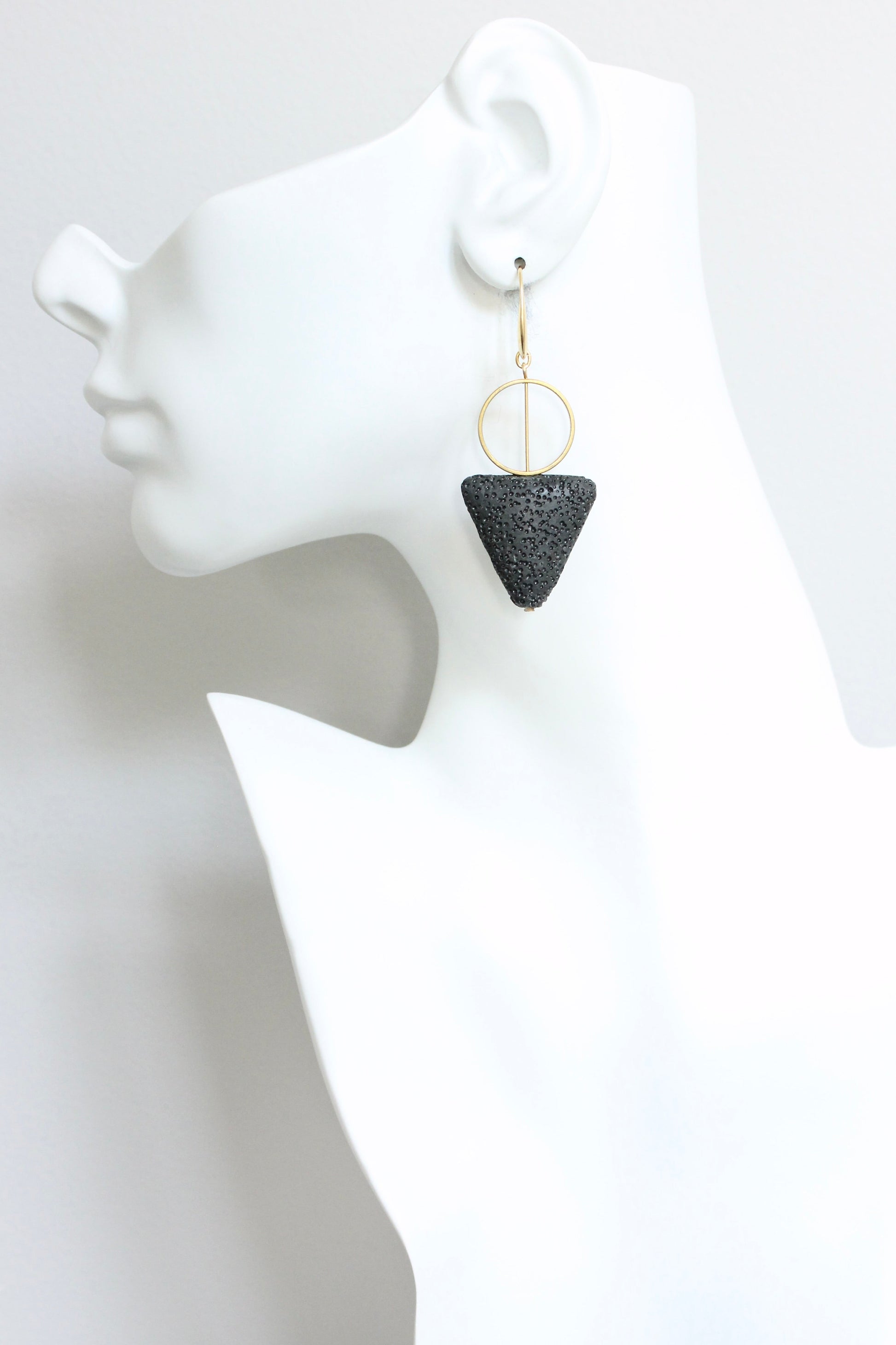 JLTE47 black lava triangle geometric earrings