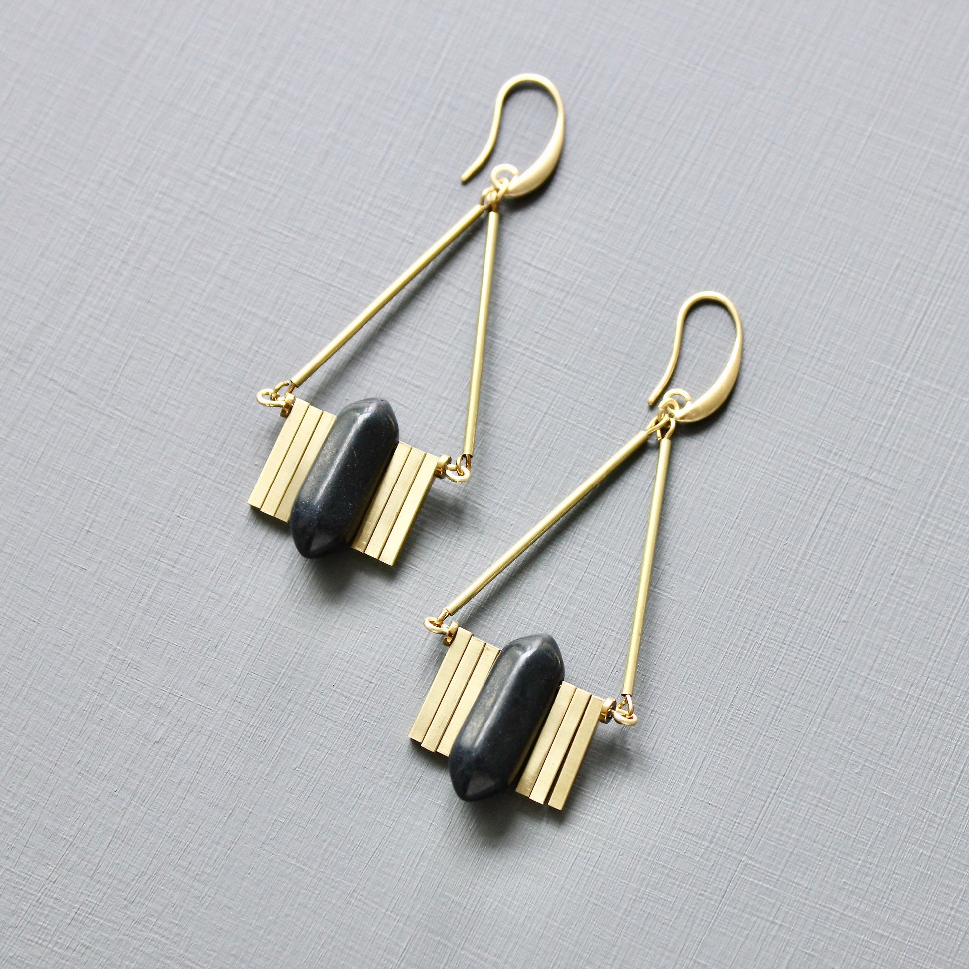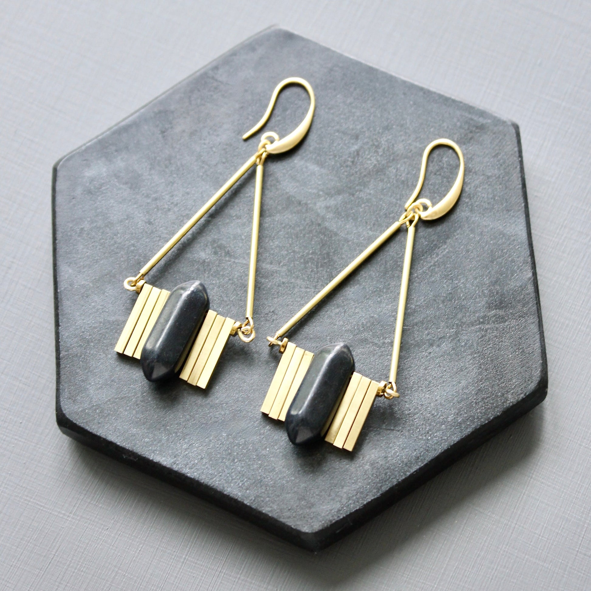 JLTE51 black and brass Artdeco earrings