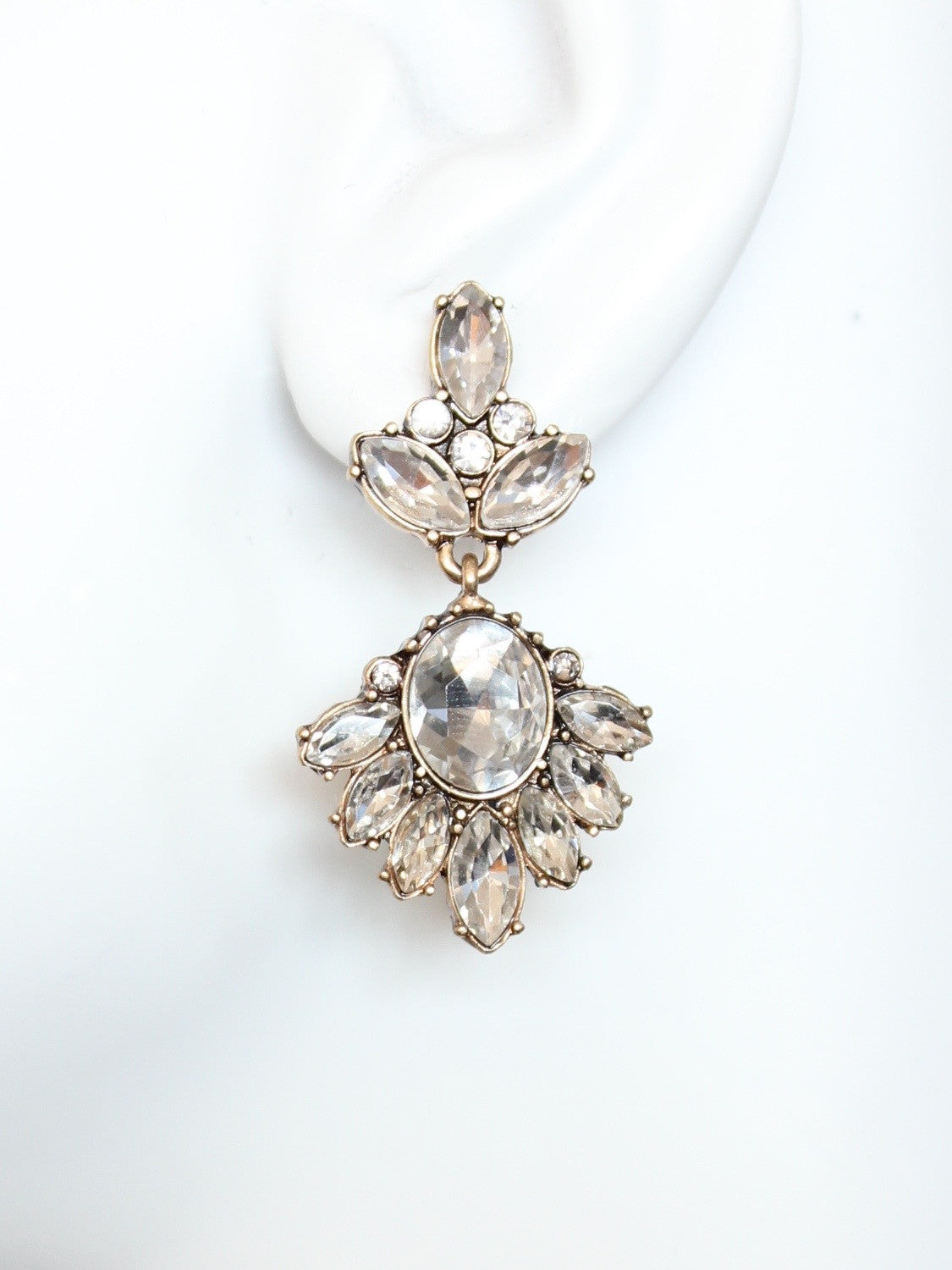 Rhinestone post earrings. Measures 1 5/8 x 1 inch.