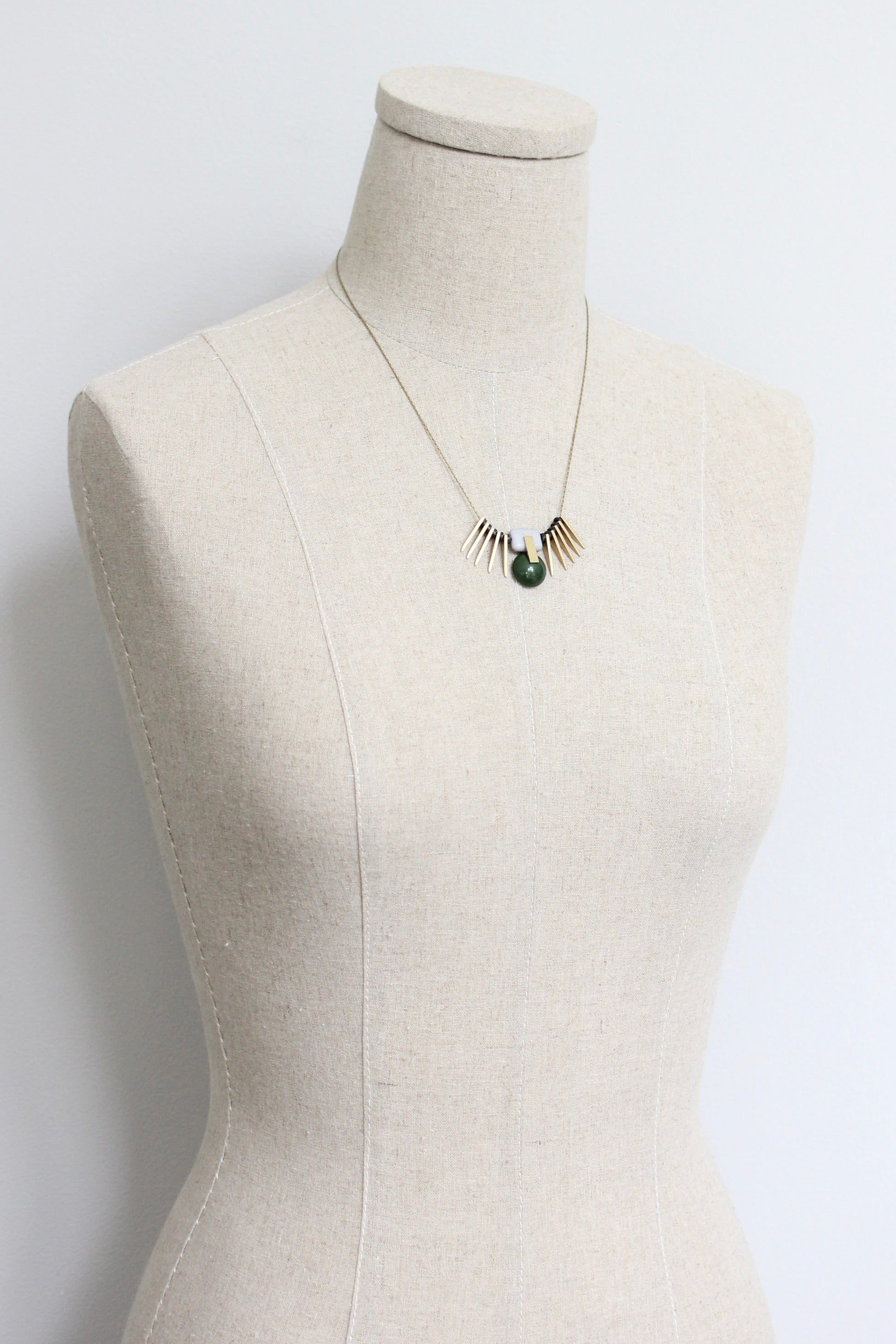 18” necklace with oxidized brass chain, magnesite, and hunter green glass pendant. 1 inch extender.
