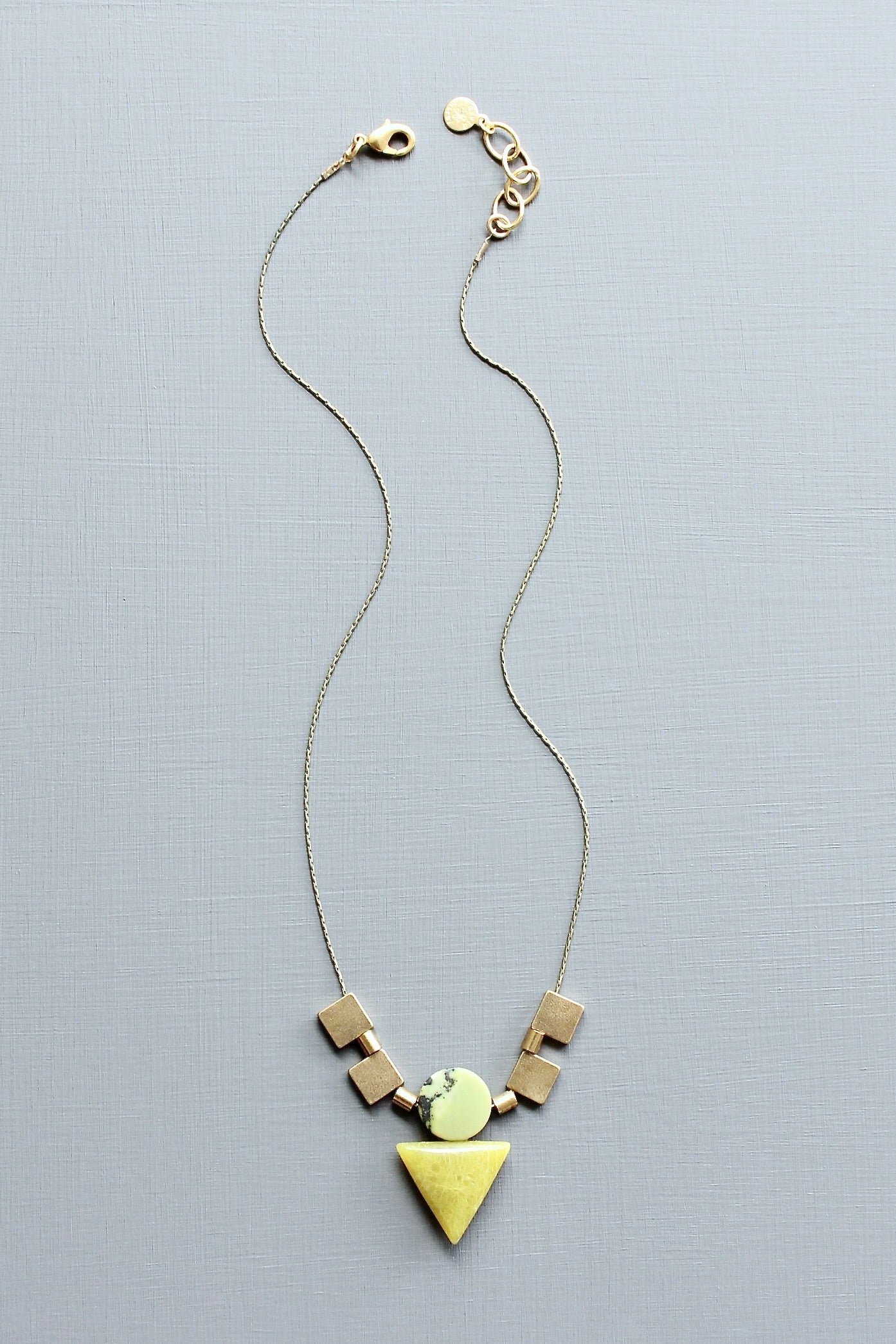 16” necklace with oxidized brass chain, brass, and dyed jade. 1 inch extender.